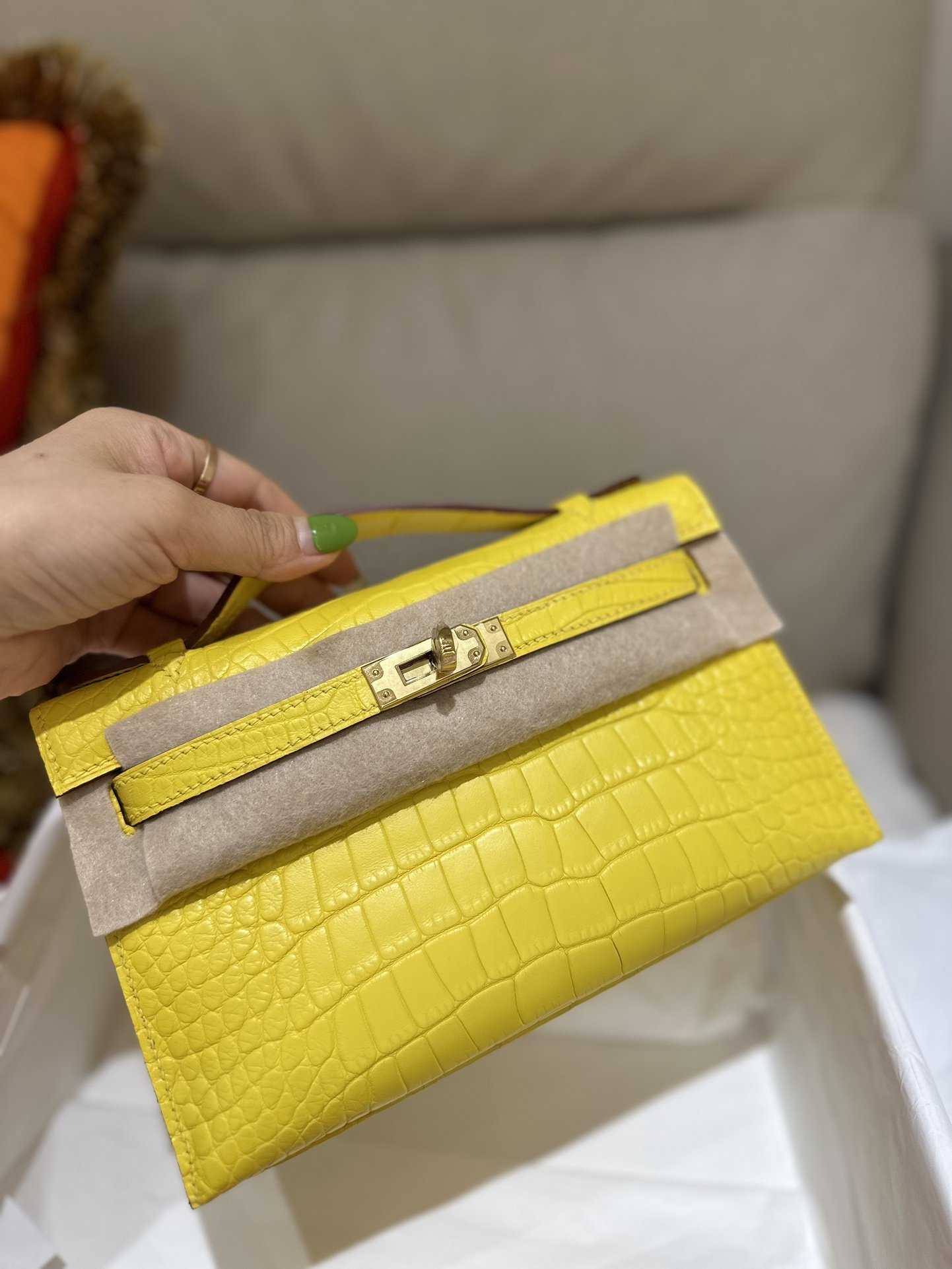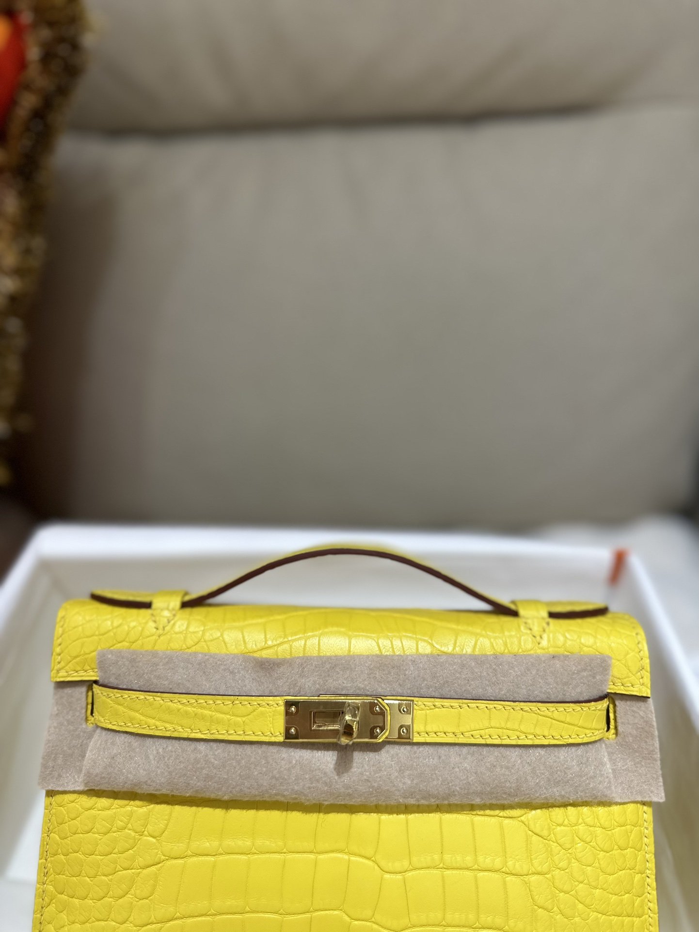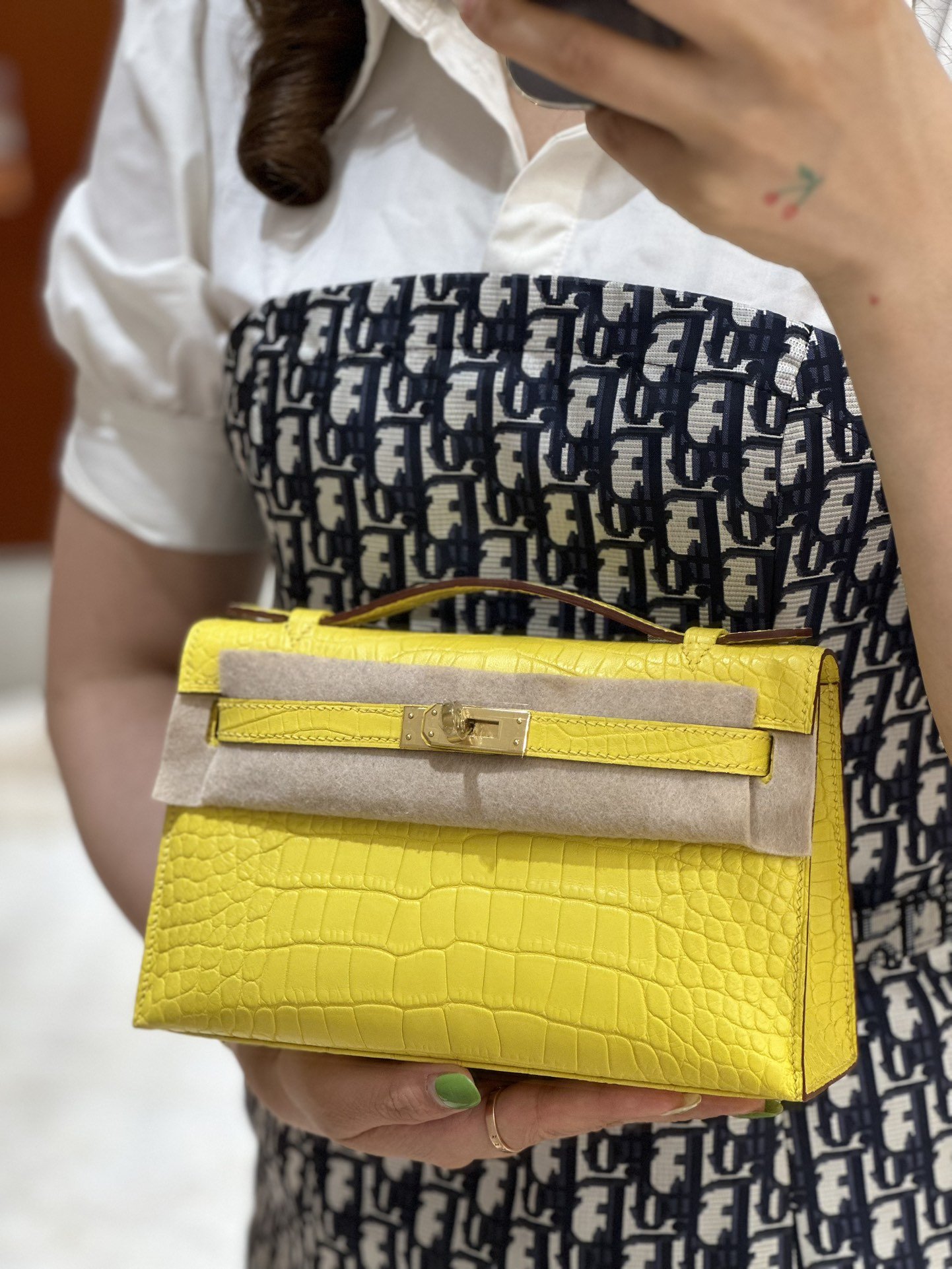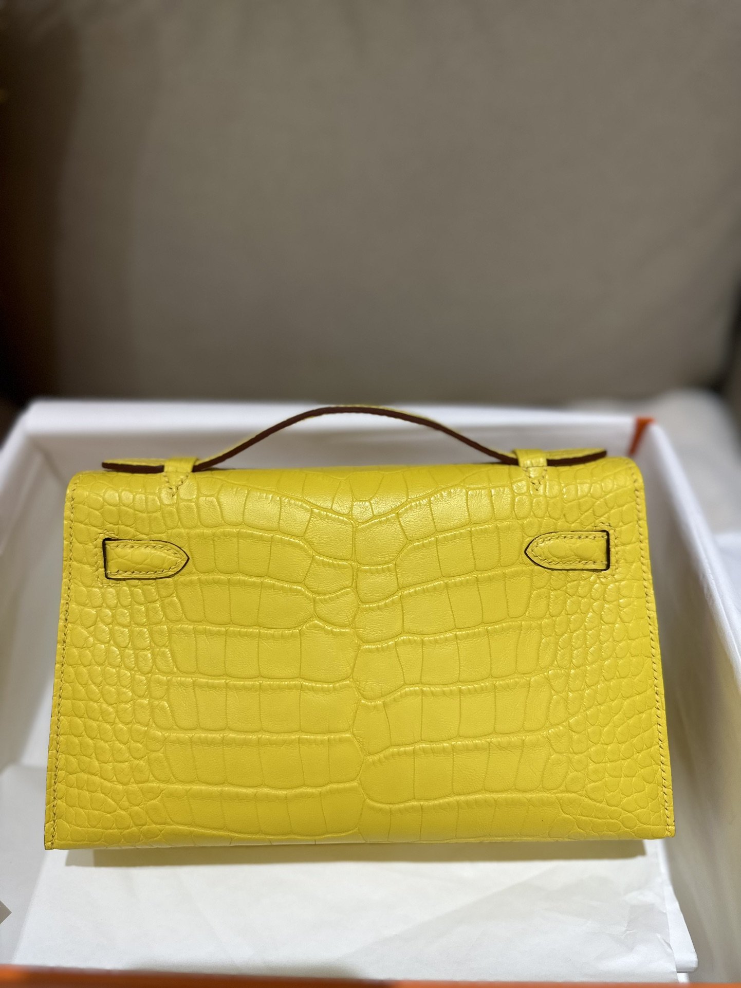 Kelly Pochette in Jaune de Naples Matte Alligator