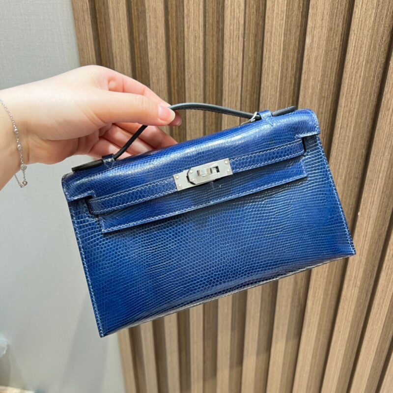 Kelly Pochette first generation lizard skin Lizard 73 sapphire blue🔹