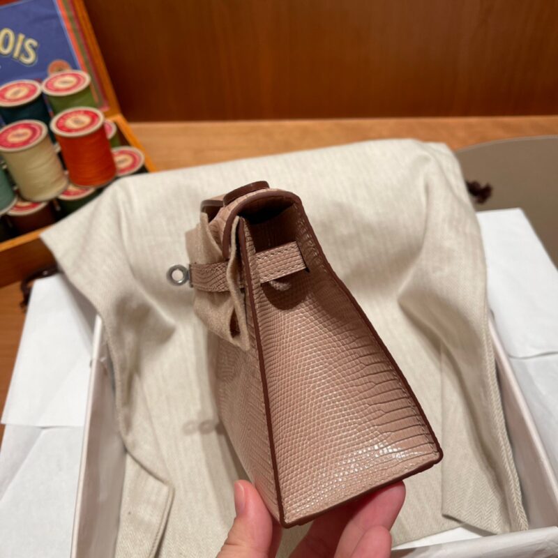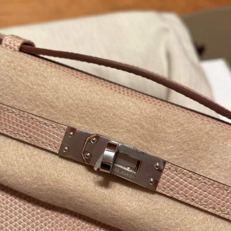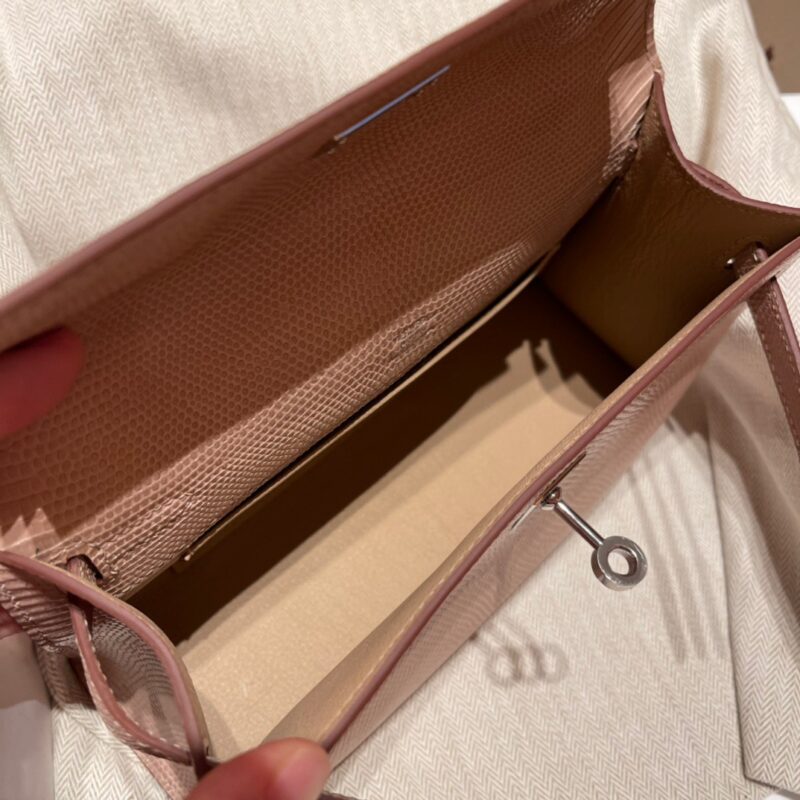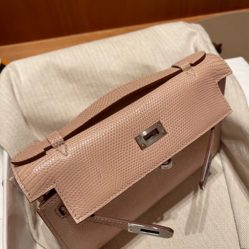 Kelly Pochette Lizard leather. 1P Rose Eglantine. Silver Buckle.