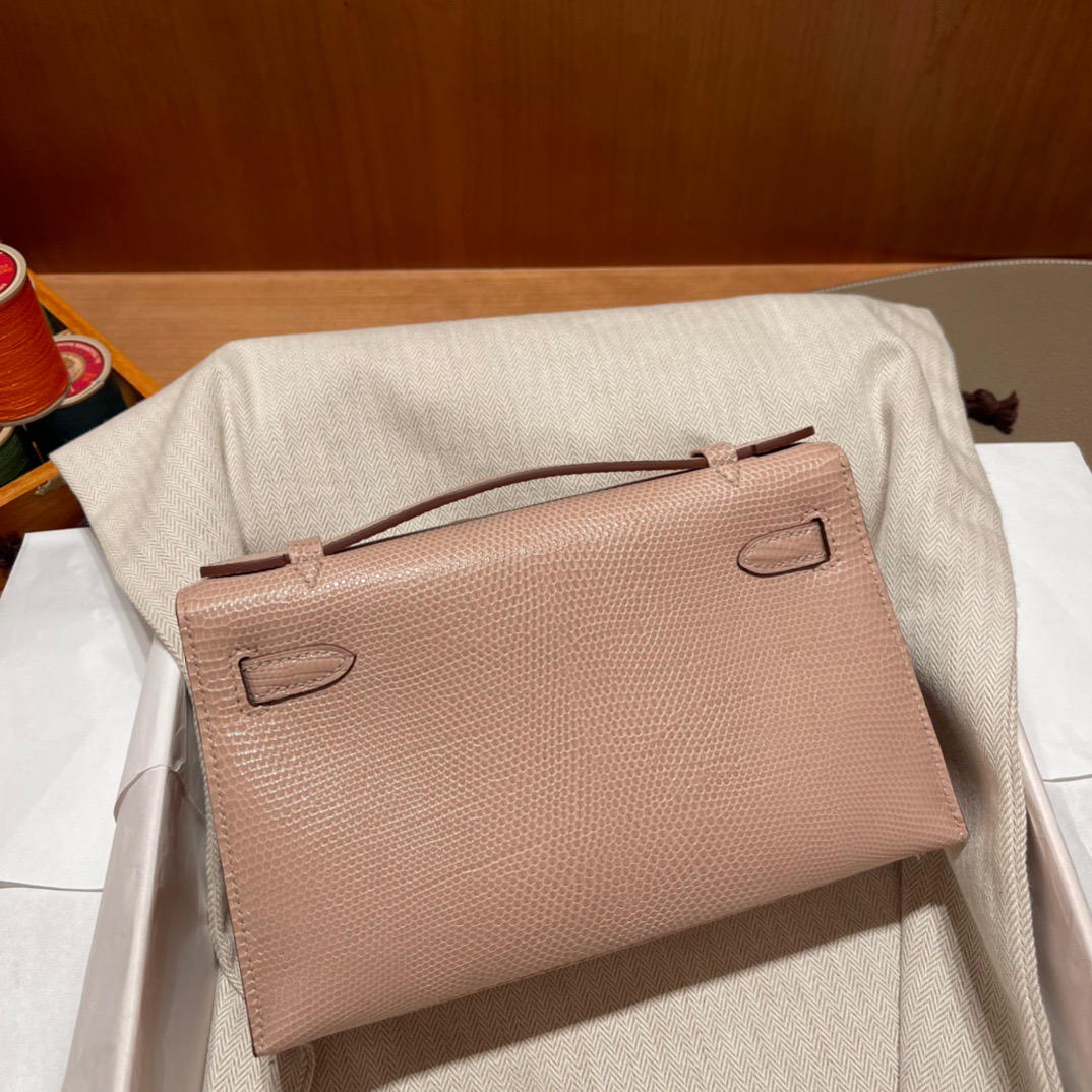 Kelly Pochette Lizard Rose Eglantine
