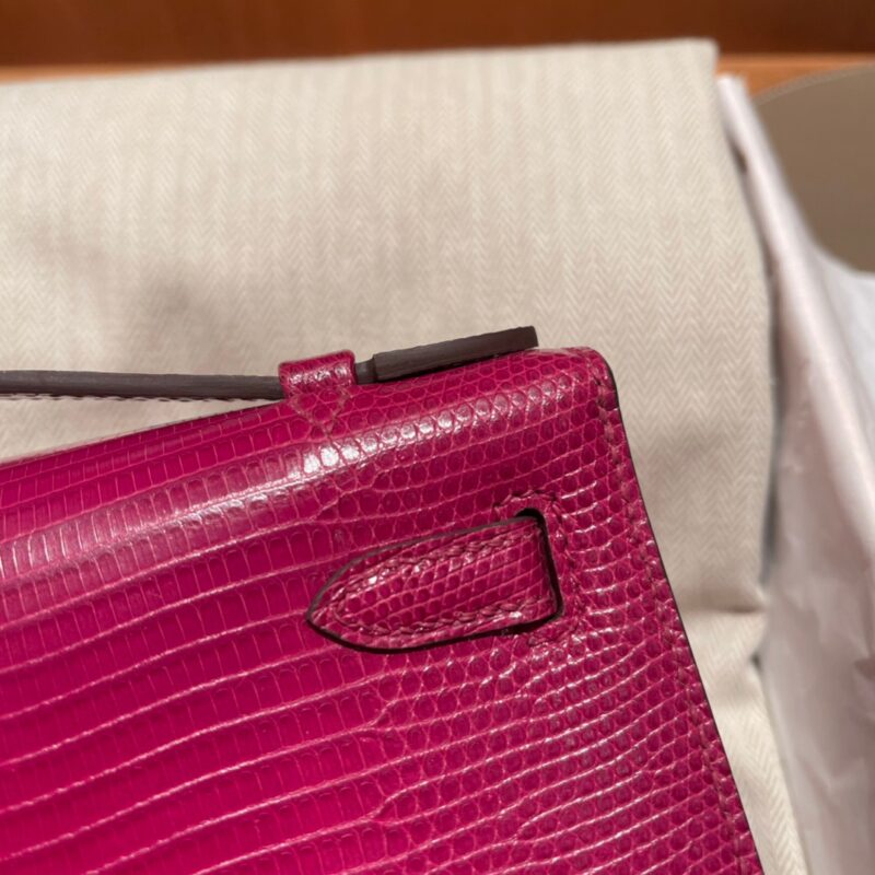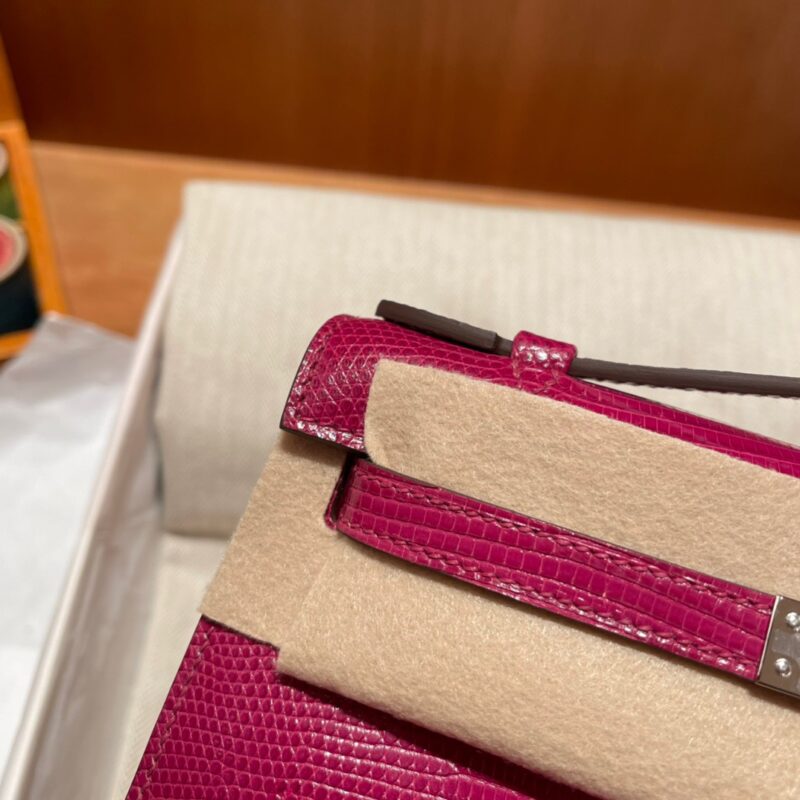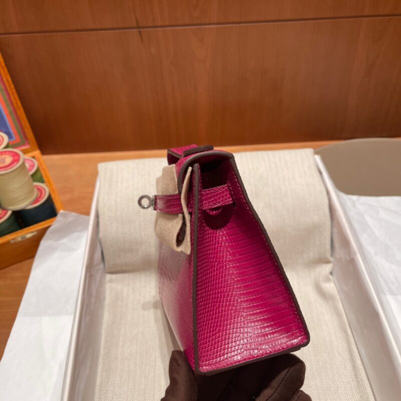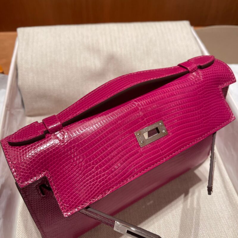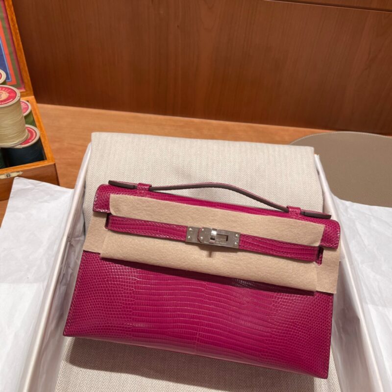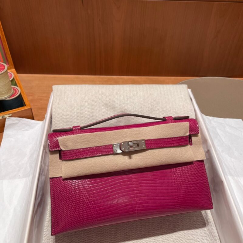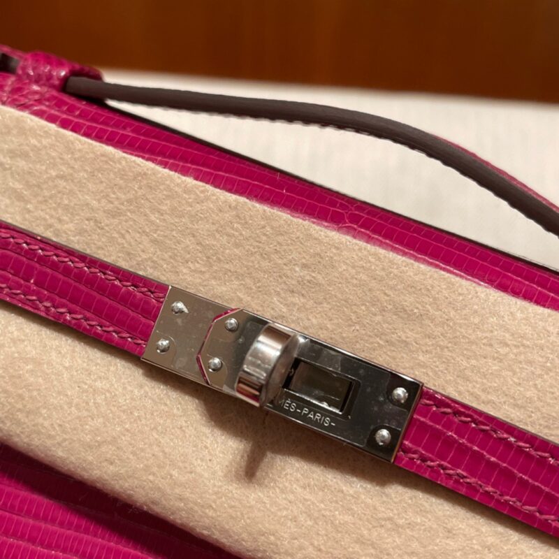 Kelly Pochette First Generation Lizard leather. Silver Buckle. K5 Tosca