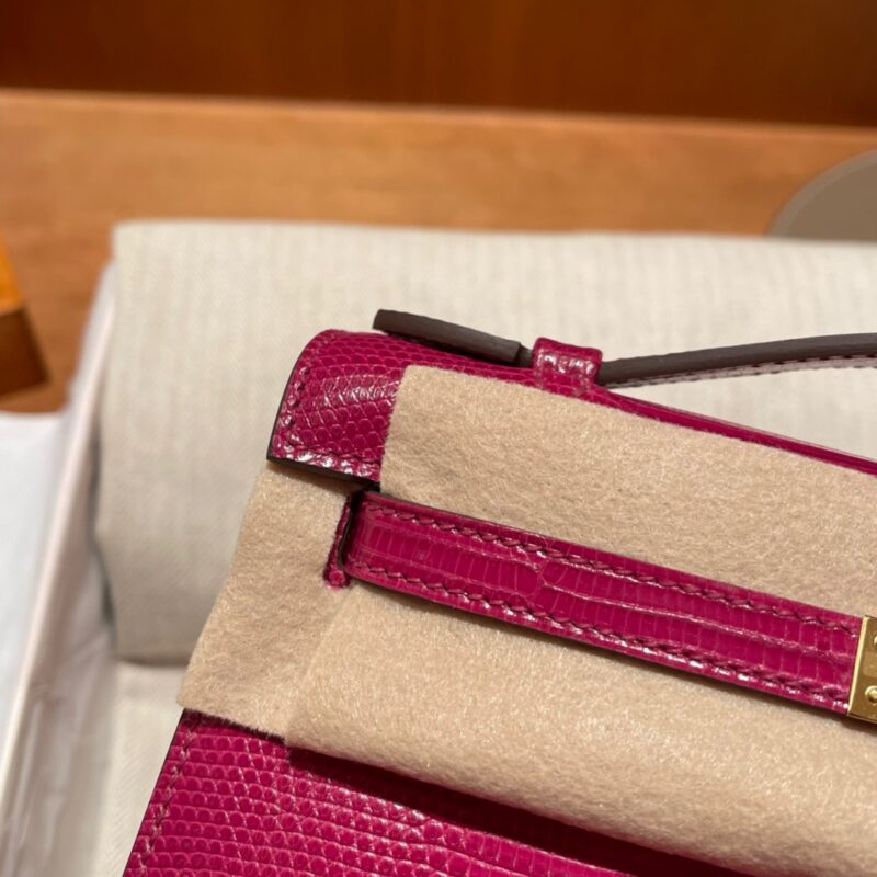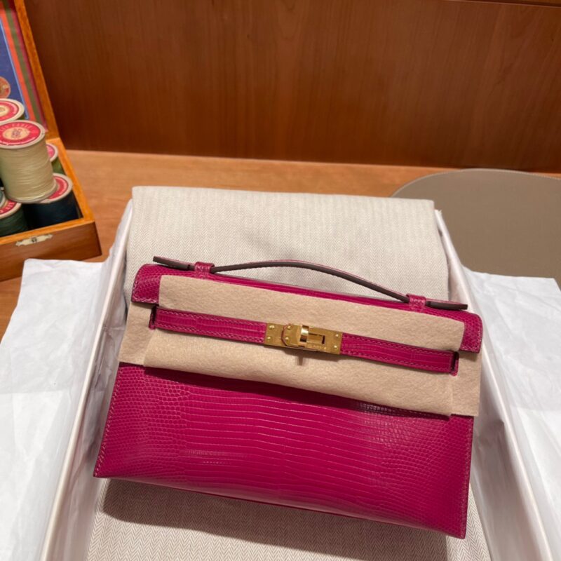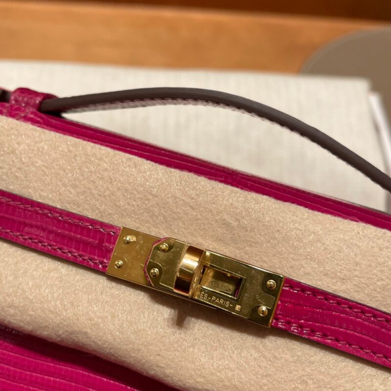 Kelly Pochette First Generation Lizard leather. Gold Buckle. K5 Tosca