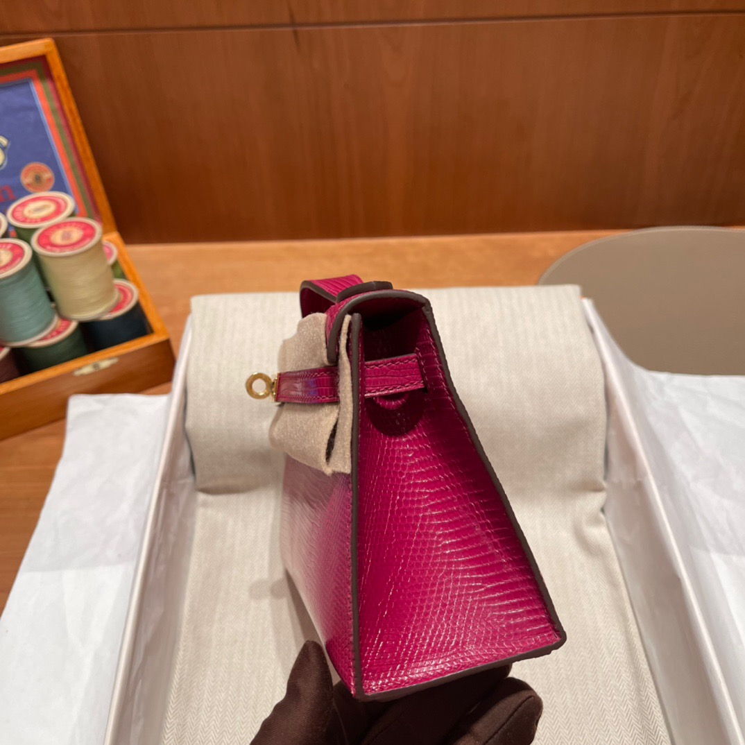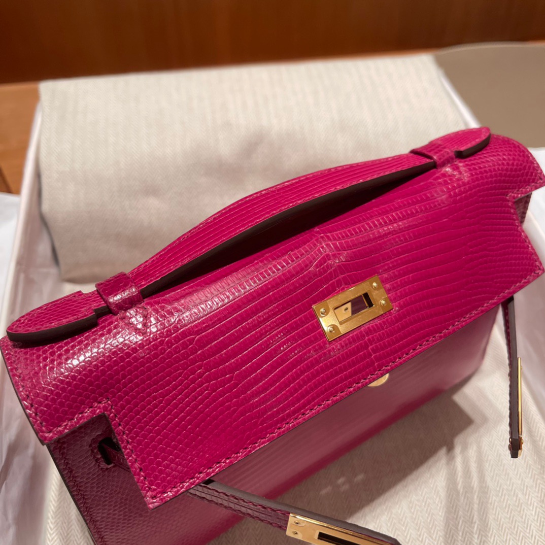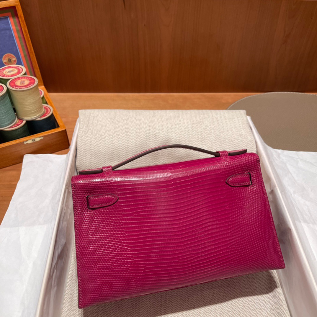 Kelly Pochette First Generation Lizard leather. Gold Buckle. K5 Tosca