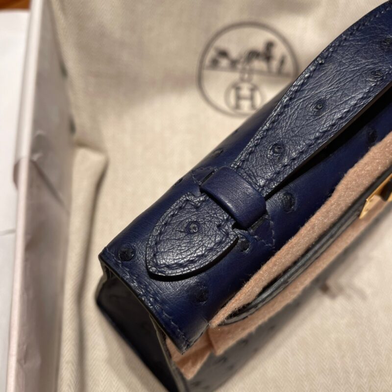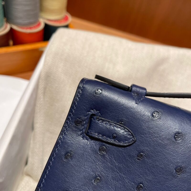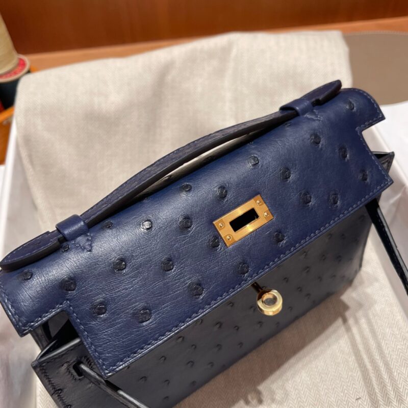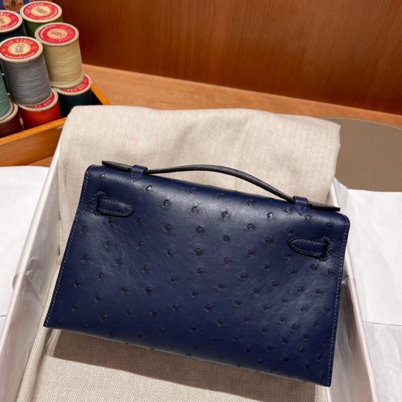 Kelly Pochette Ostrich Bleu Sapphire