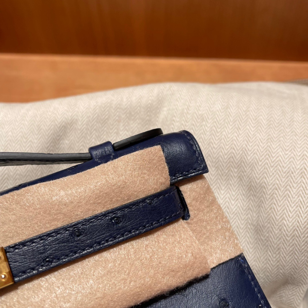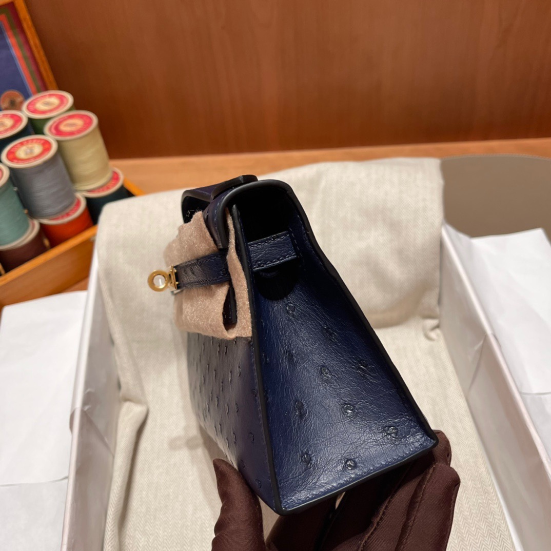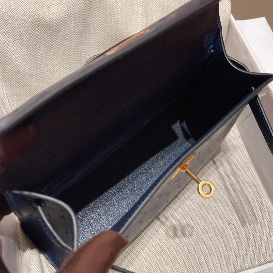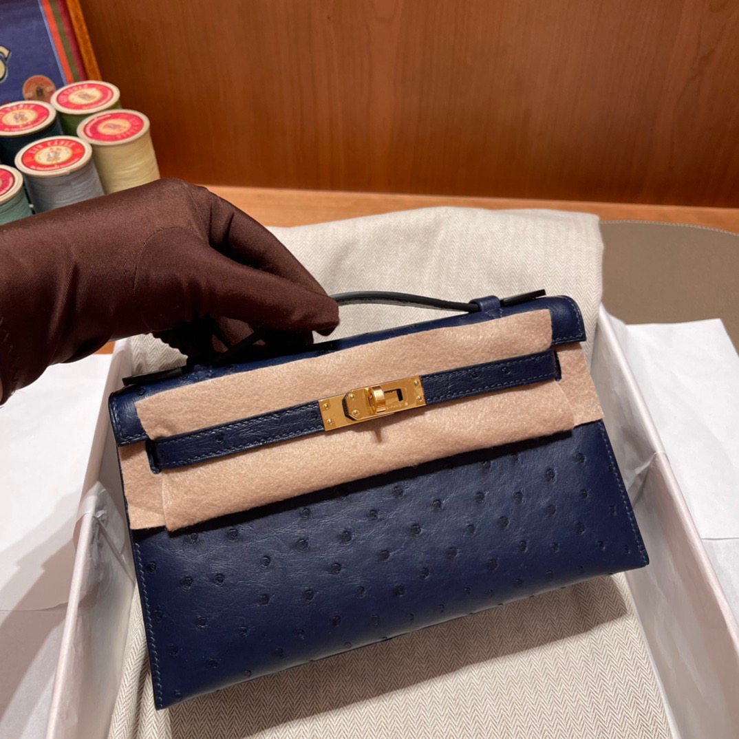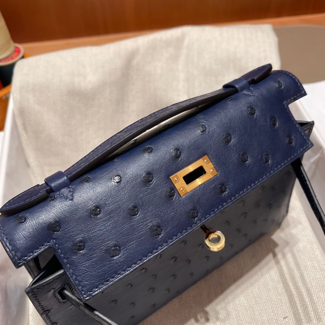 Kelly Pochette Ostrich Bleu Sapphire