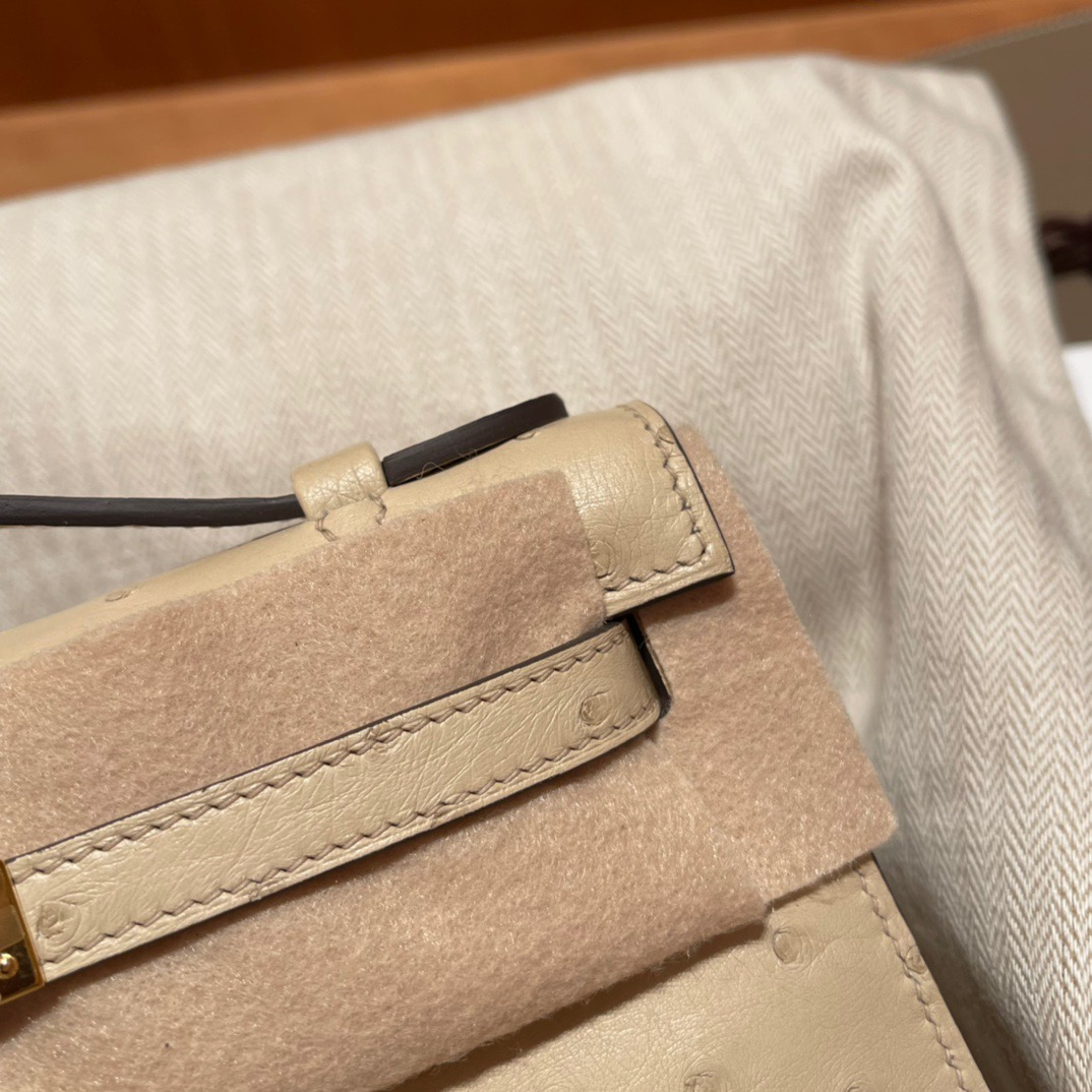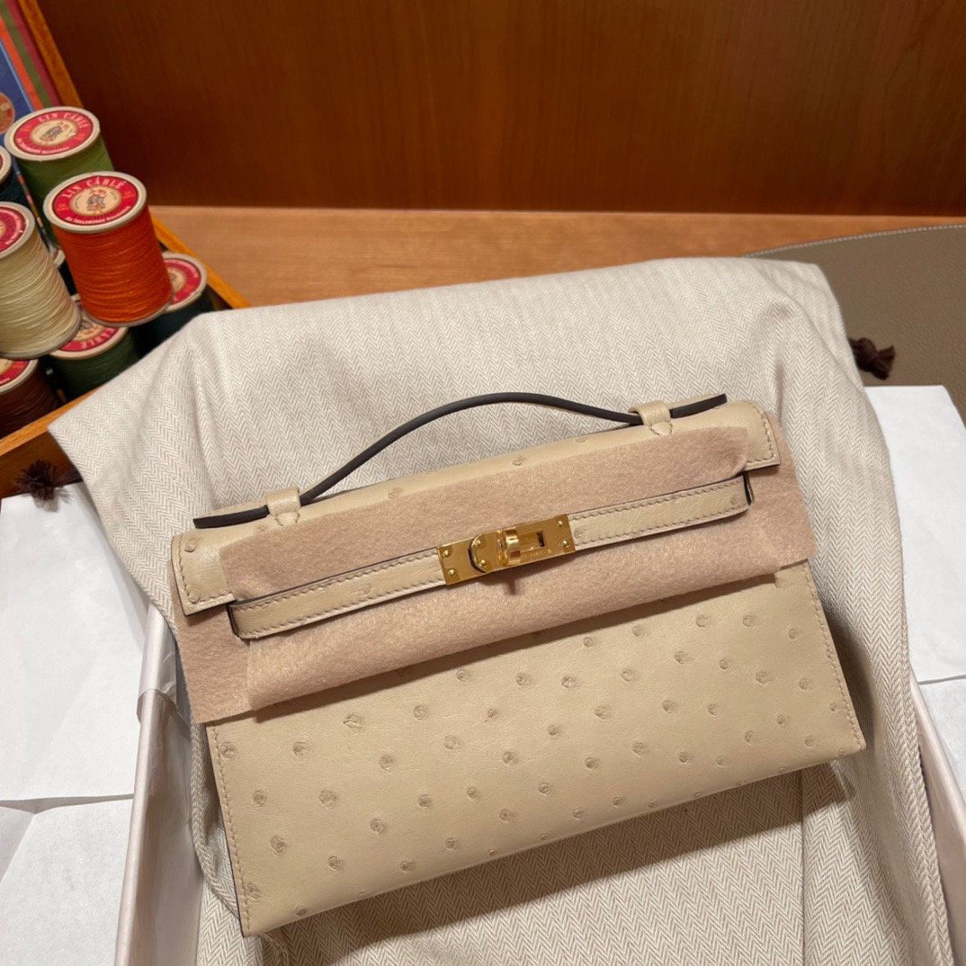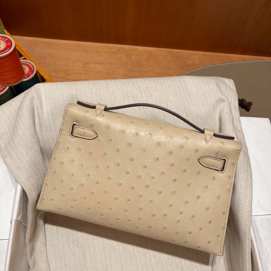Kelly Pochette Ostrich Parchemin