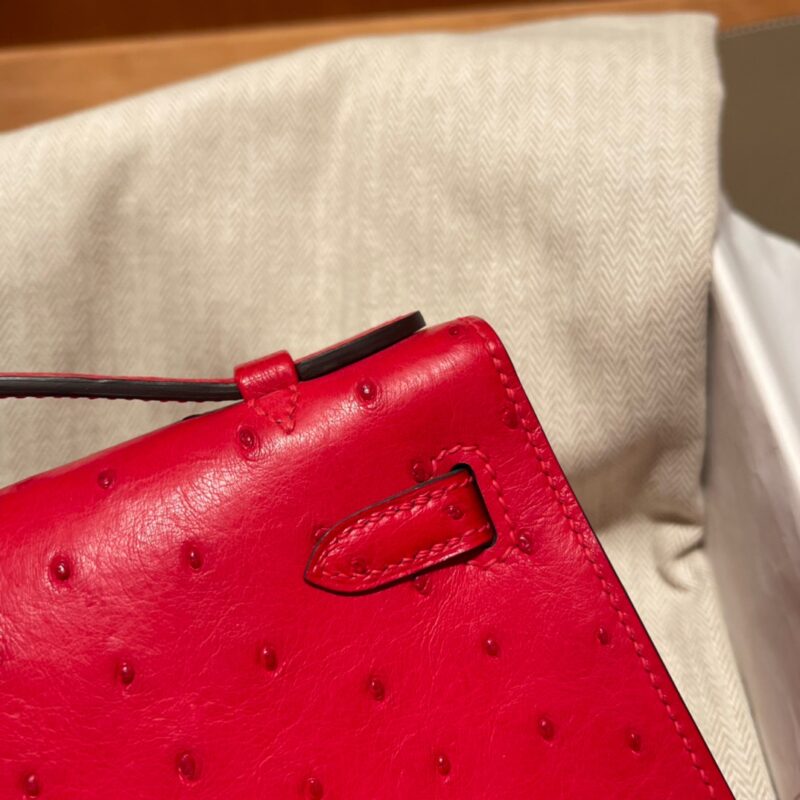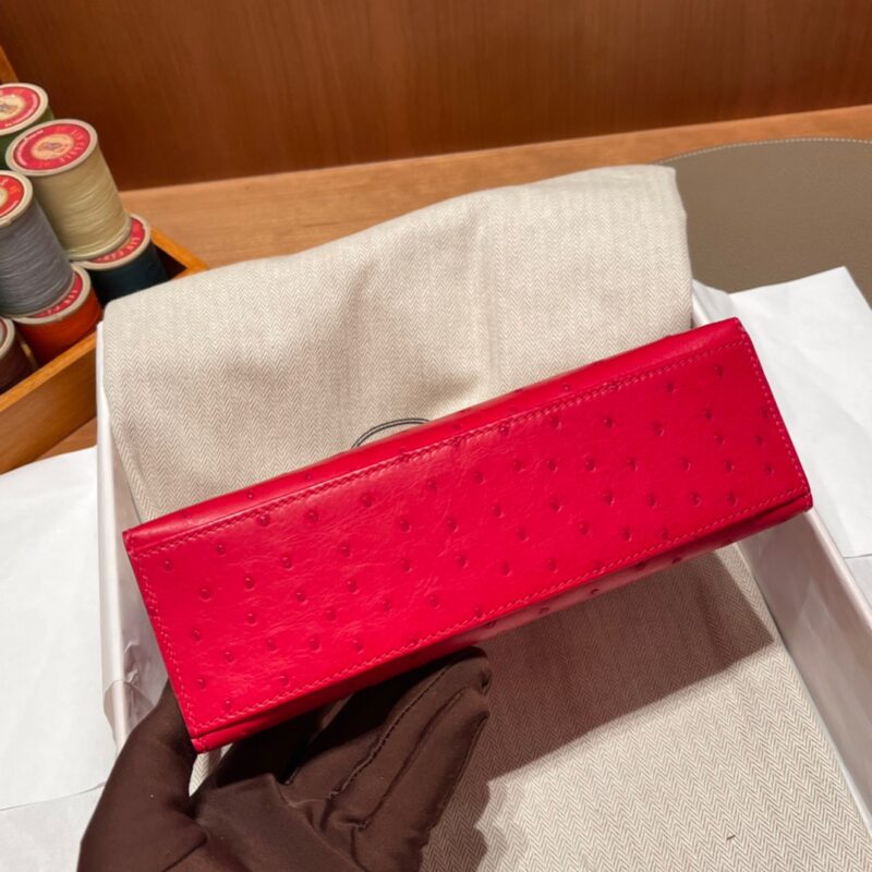 Kelly Pochette Ostrich Rouge Casaque