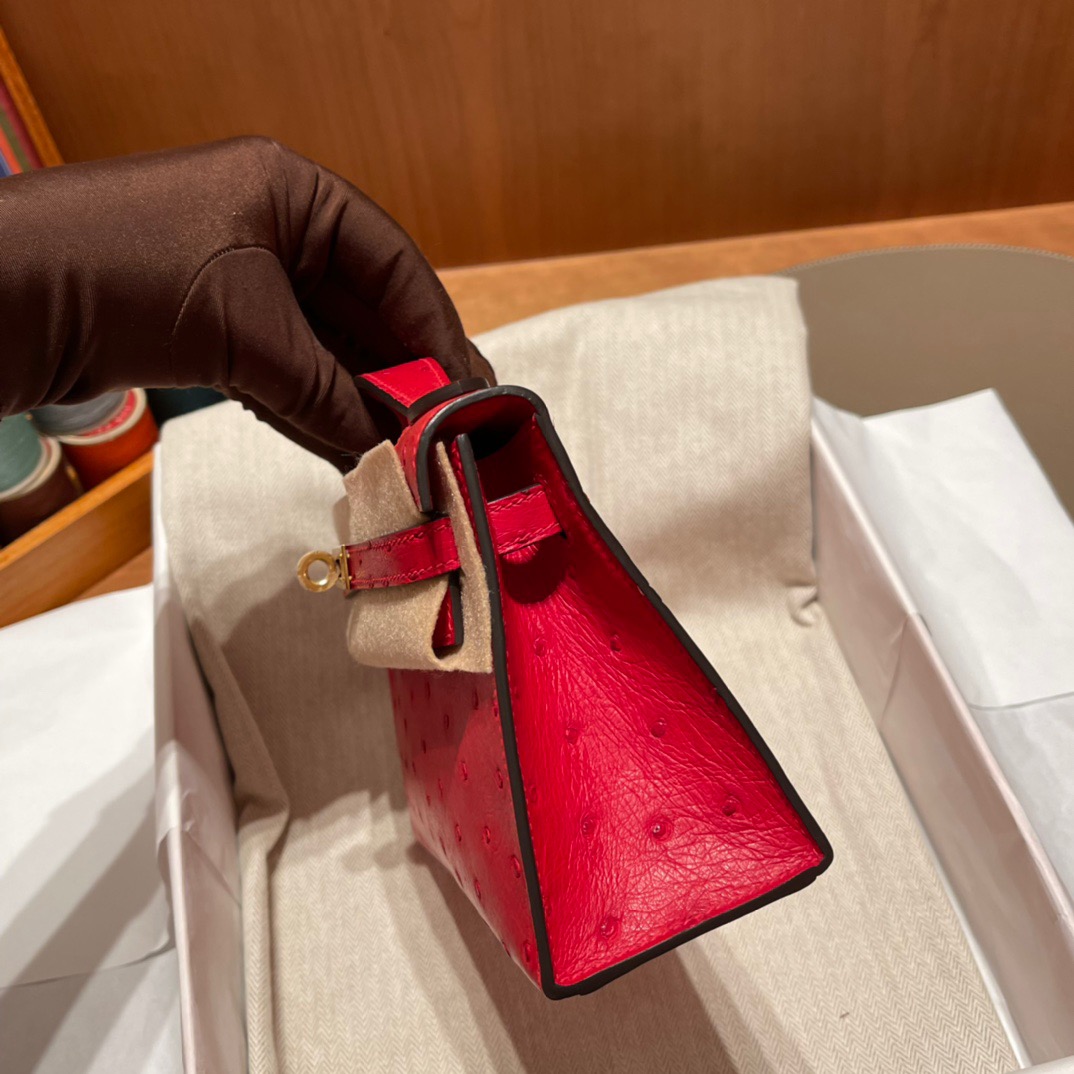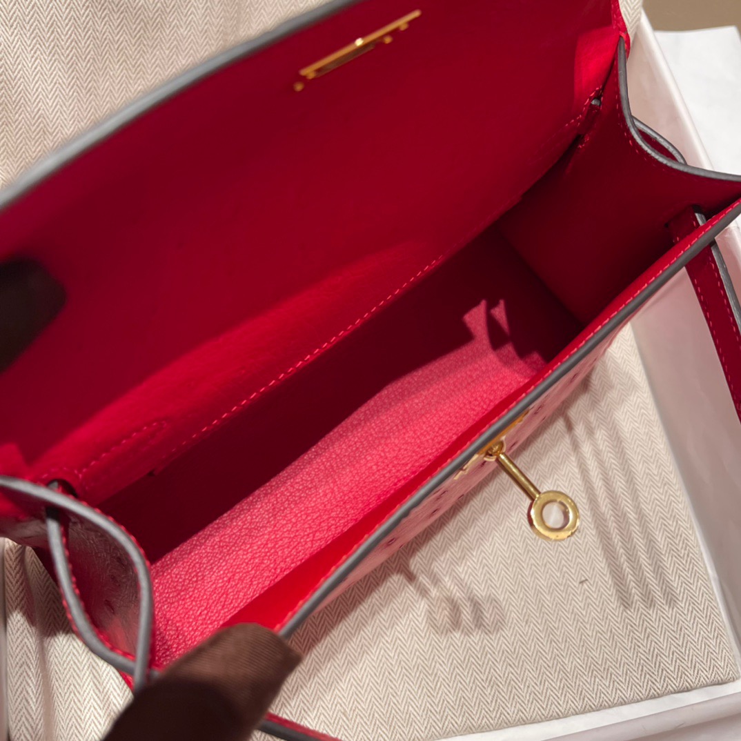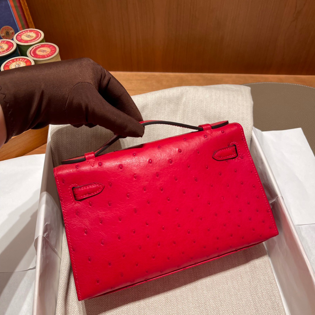 Kelly Pochette Ostrich Rouge Casaque