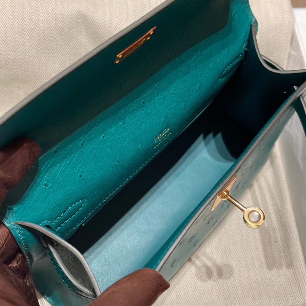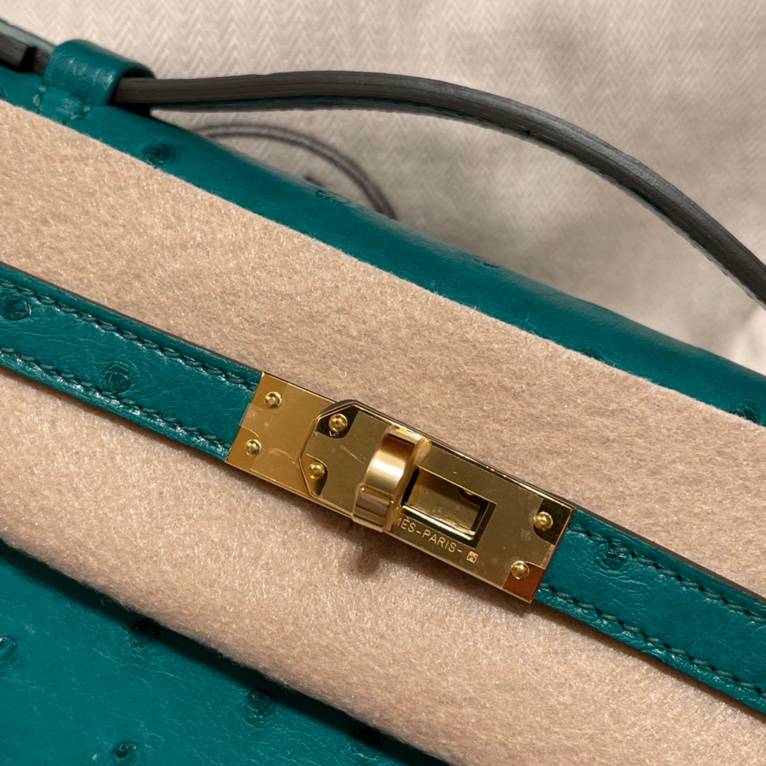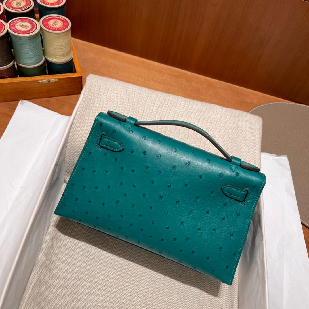 Kelly Pochette generation Ostrich leather. U4 Velvet Green (Vert Vertigo). Gold Buckle.