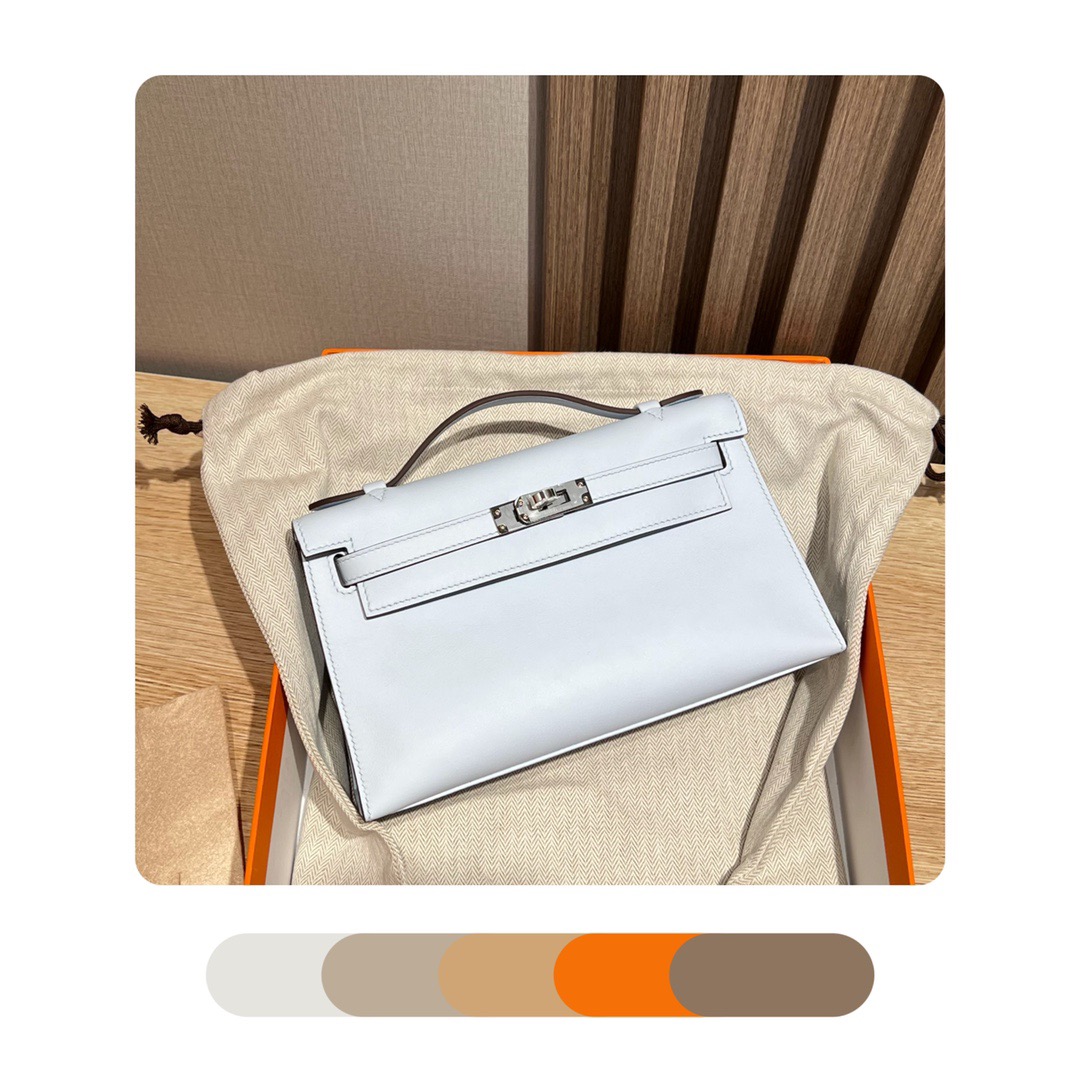 Kelly Pochette Generation Evening Bag Clutch It is a perfect partner with the pig nose chain. Silver Buckle. Swift Leather. T0 Blue Brume.