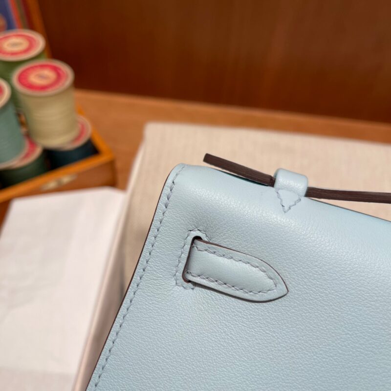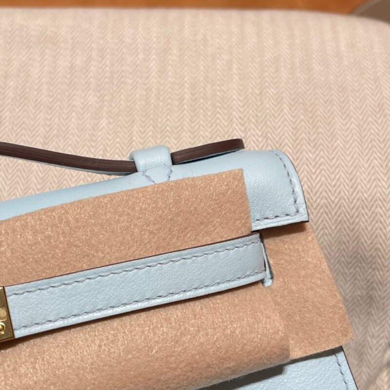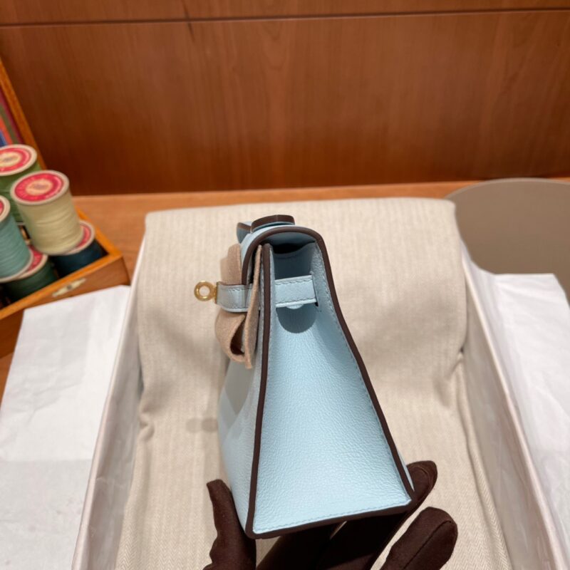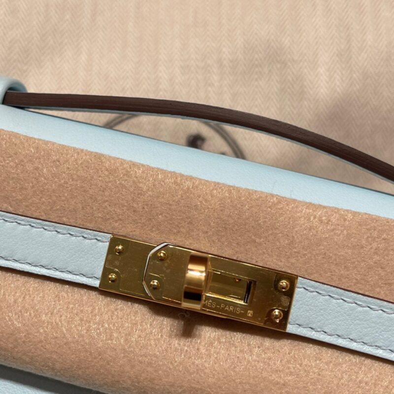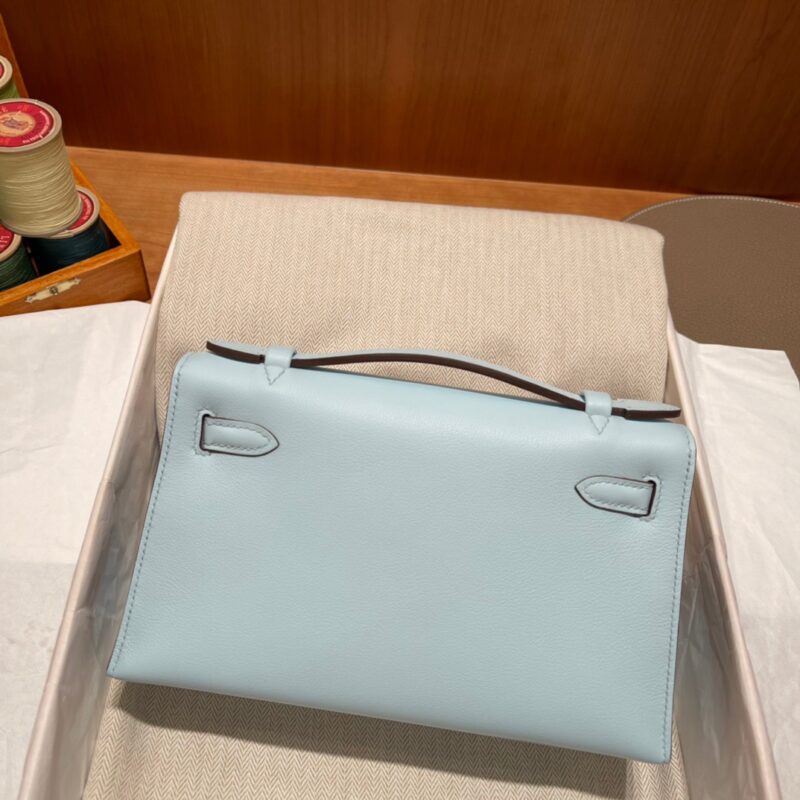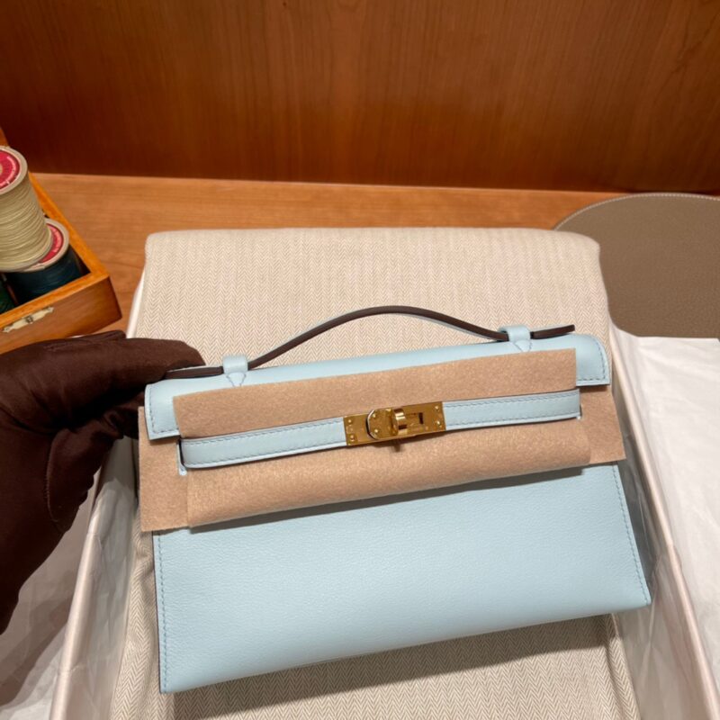Kelly Pochette Generation Evening Bag Clutch It is a perfect partner with the pig nose chain. Gold Buckle. Swift Leather. T0 Blue Brume.