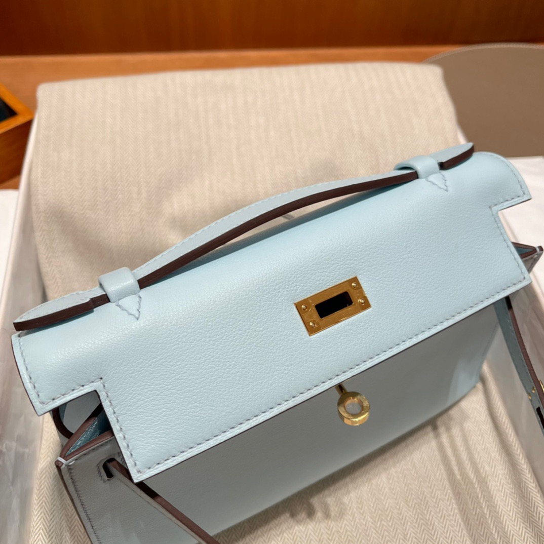 Kelly Pochette Generation Evening Bag Clutch It is a perfect partner with the pig nose chain. Gold Buckle. Swift Leather. T0 Blue Brume.