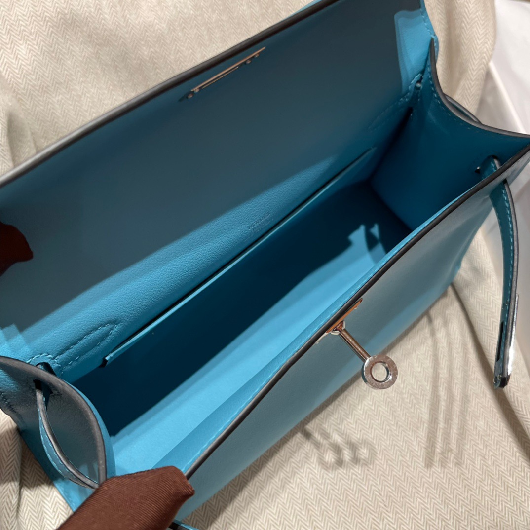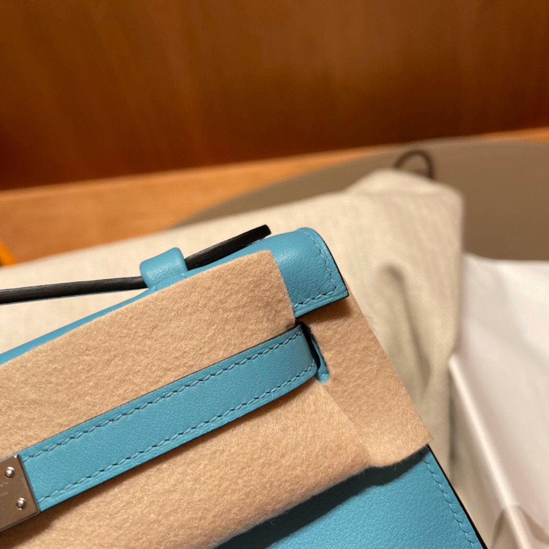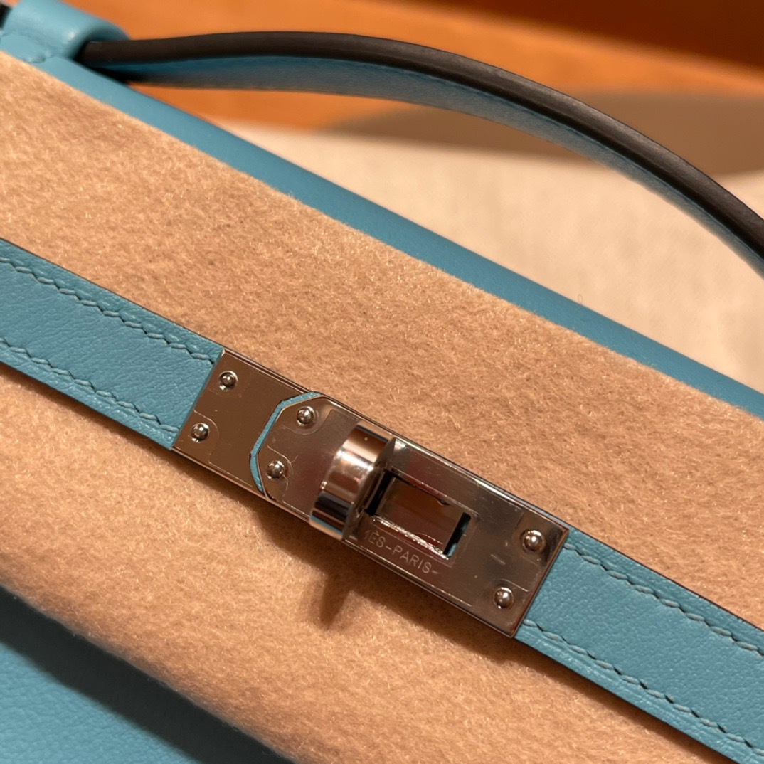 Kelly Pochette Generation Evening Bag Clutch It is a perfect partner with the pig nose chain. Swift Leather. P3 Blue de Nord. Silver Buckle.