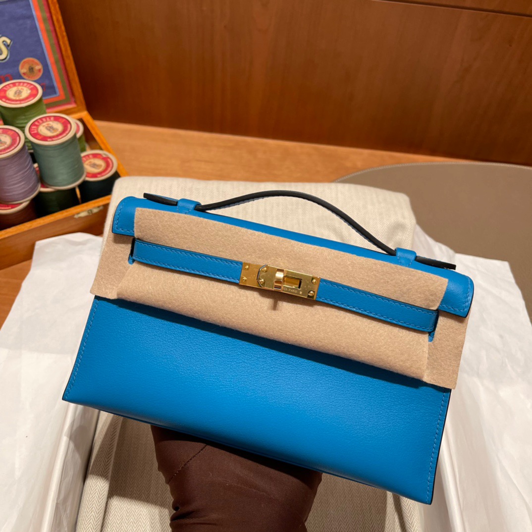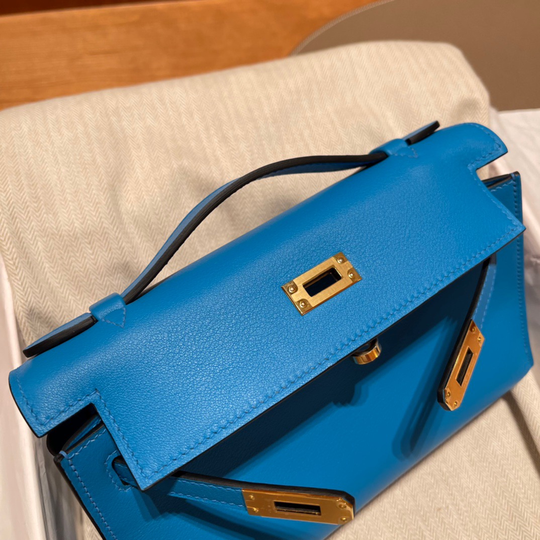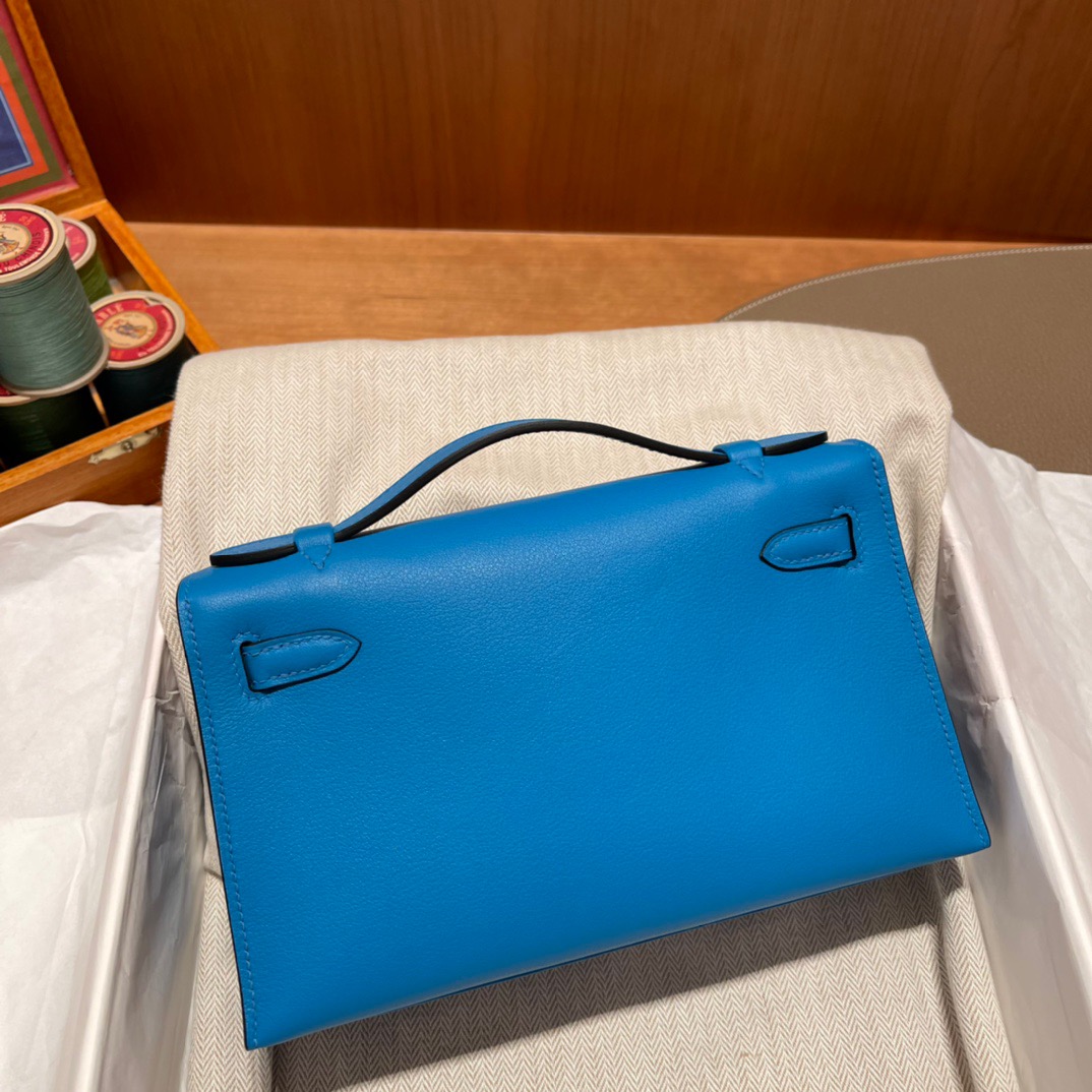 Kelly Pochette Generation Evening Bag Clutch It is a perfect partner with the pig nose chain. Gold Buckle. Swift Leather. 0F Blue Frida.