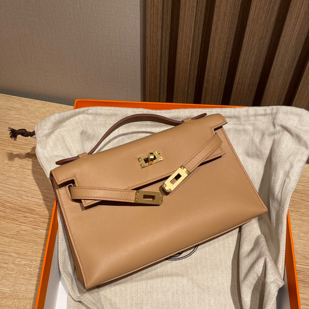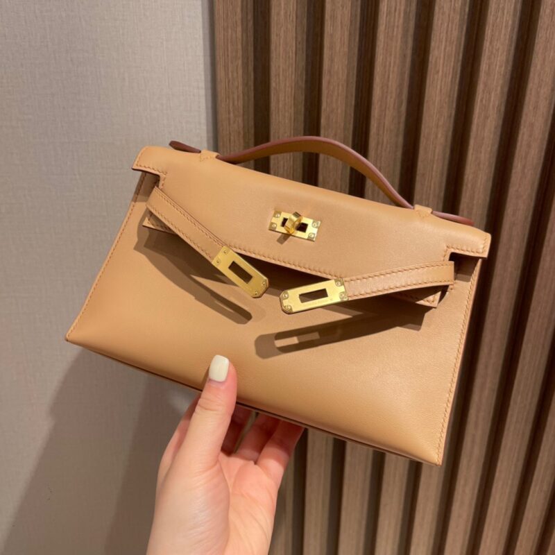 Kelly Pochette Generation Evening Bag Clutch It is a perfect partner with the pig nose chain. Silver Gold Buckle. Swift leather. 0M Marsala Brown (Chai).