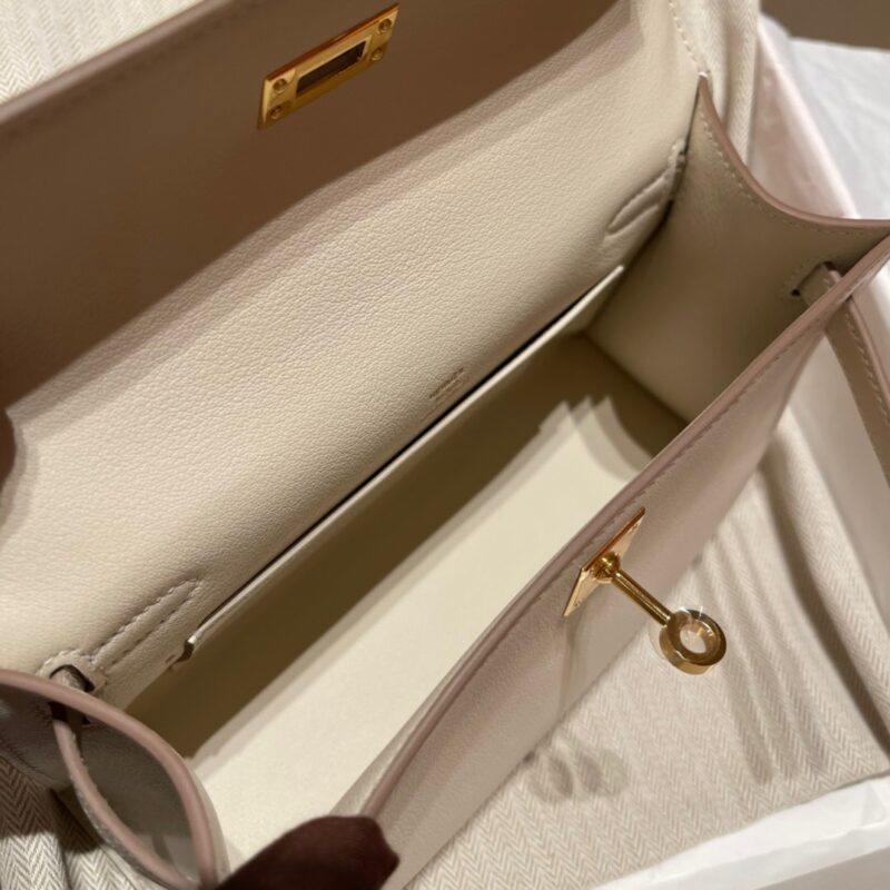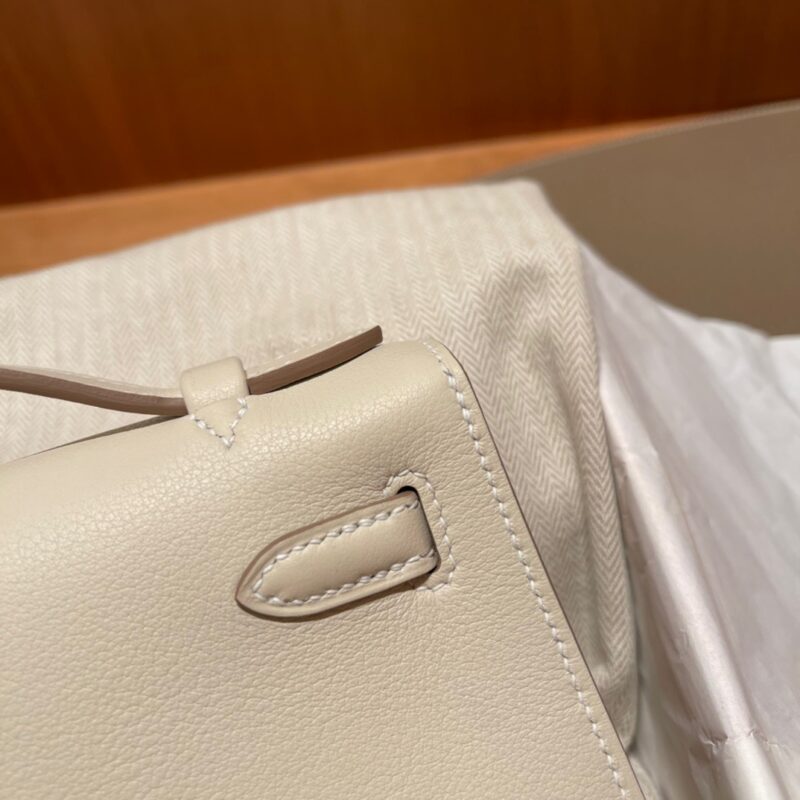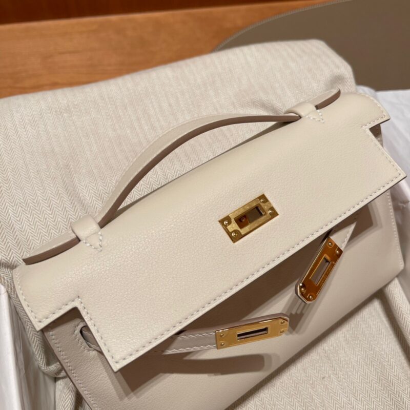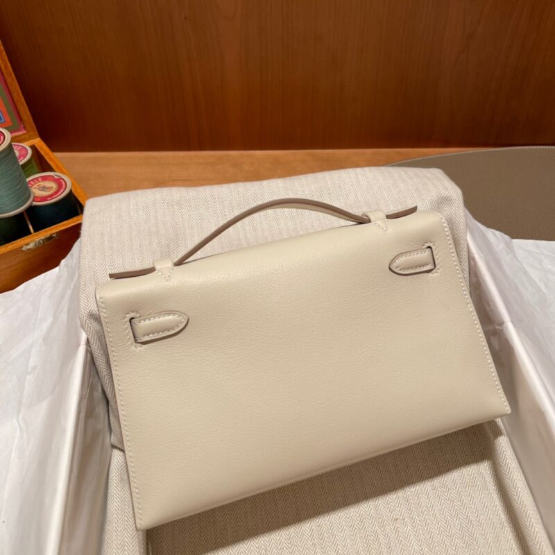 Kelly Pochette Generation Evening Bag Clutch It is a perfect partner with the pig nose chain. Gold Buckle. Swift leather. 10 Craie.
