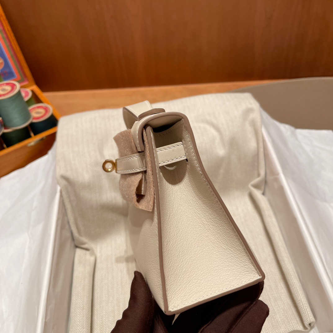Kelly Pochette Generation Evening Bag Clutch It is a perfect partner with the pig nose chain. Gold Buckle. Swift leather. 10 Craie.