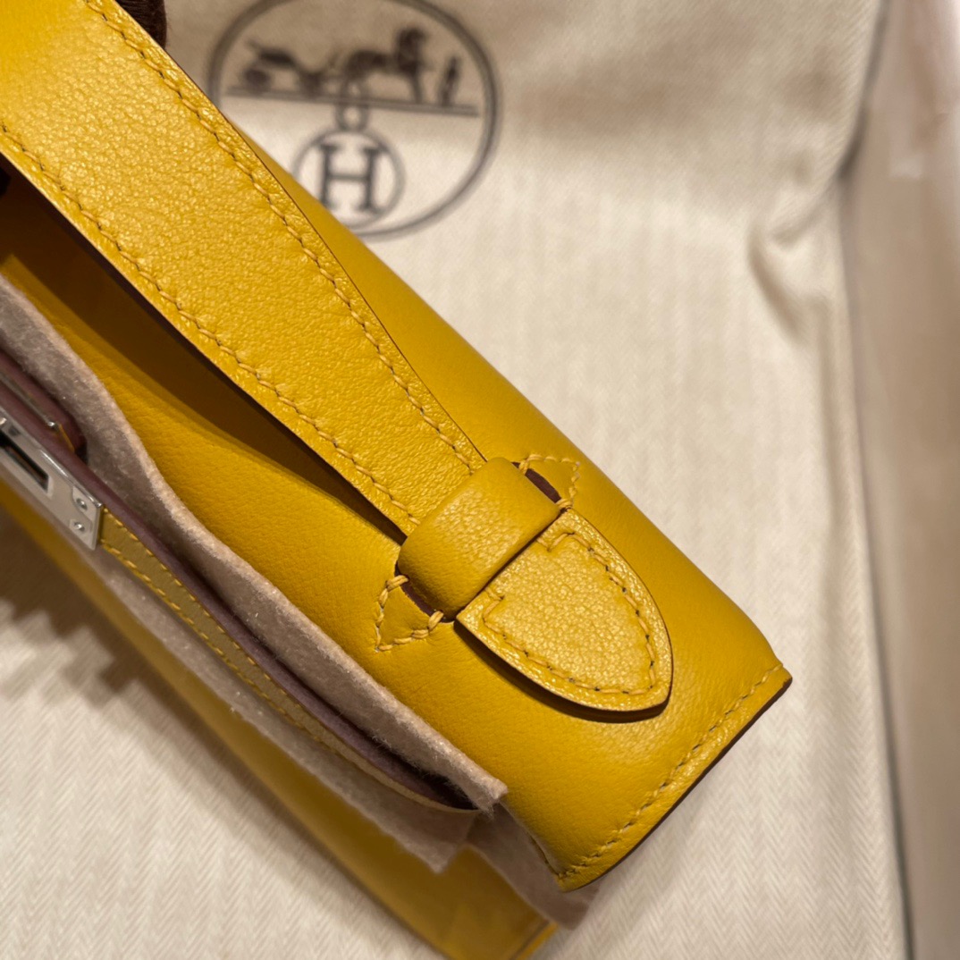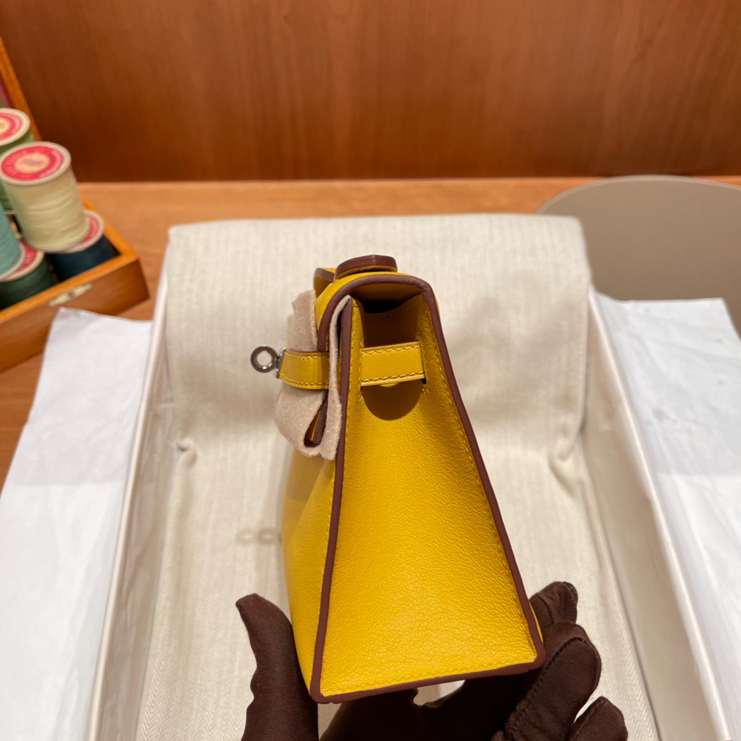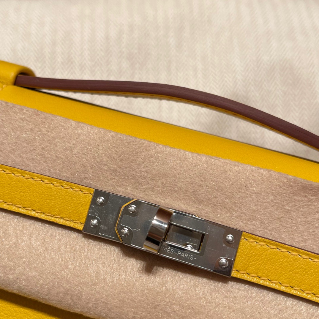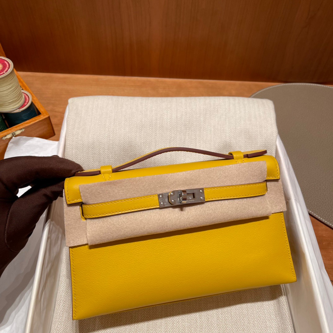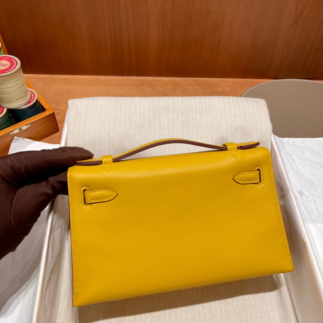 Kelly Pochette Generation Evening Bag Clutch It is a perfect partner with the pig nose chain. Silver Buckle. Swift leather. 9D Jaune Ambre.