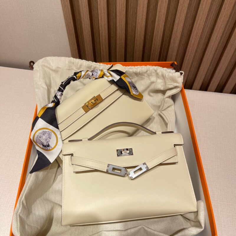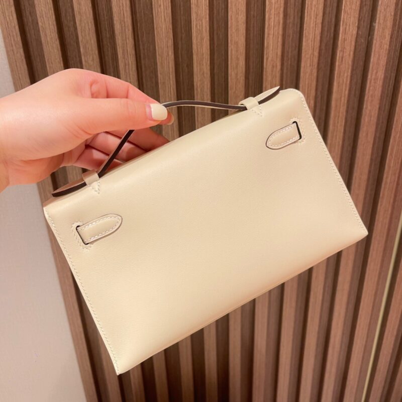 Kelly Pochette Generation Evening Bag Clutch It is a perfect partner with the pig nose chain. Gold Buckle. Swift leather. i2 Nata.