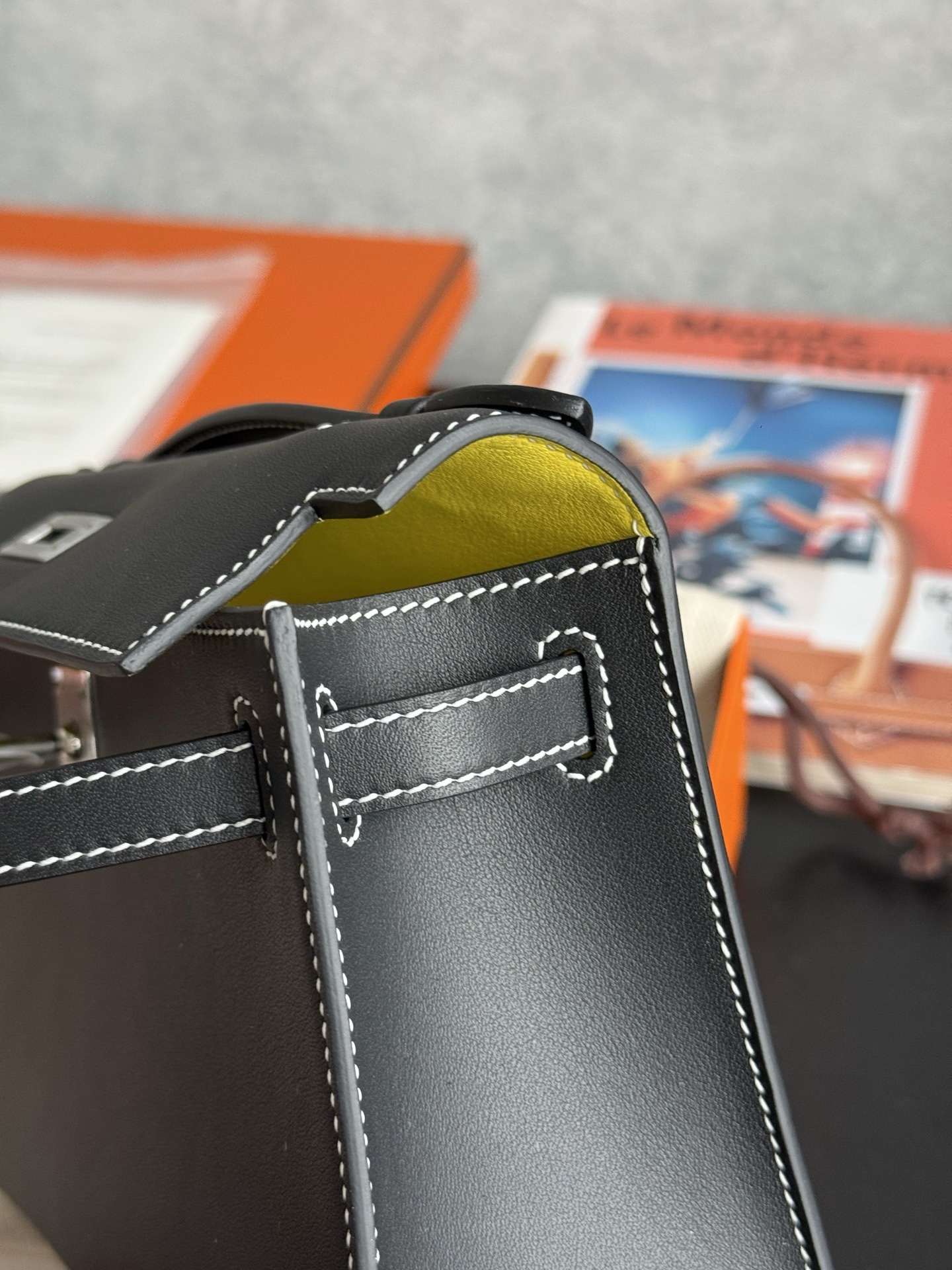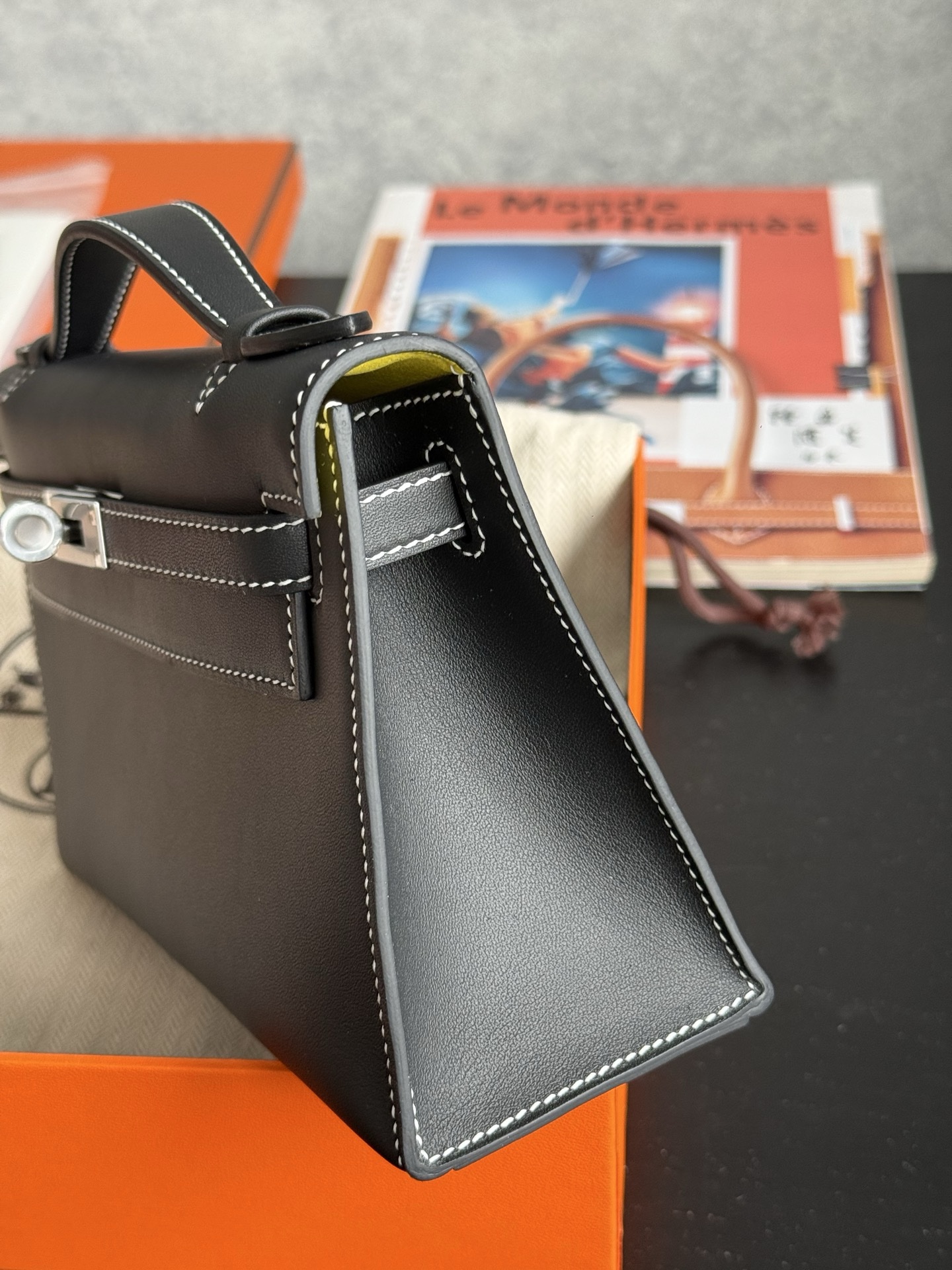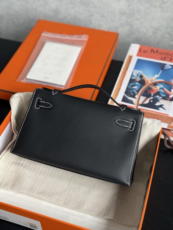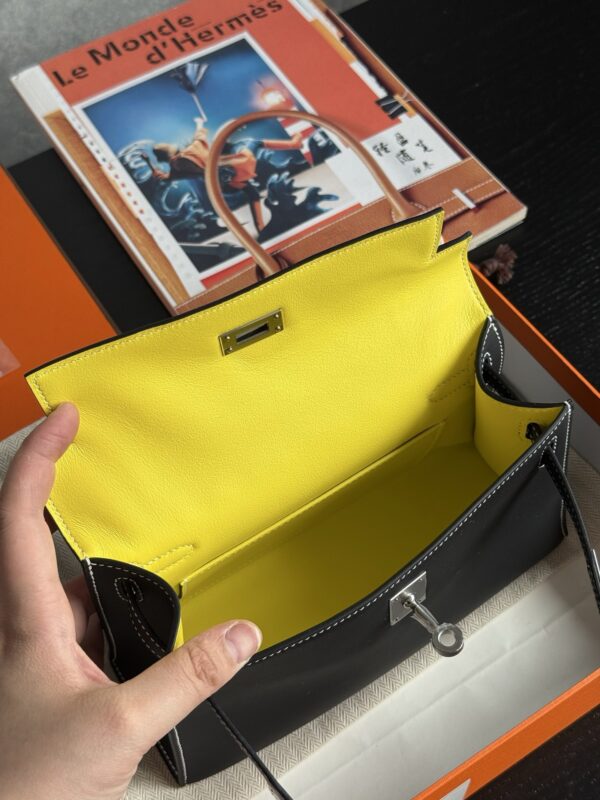 Kelly Pochette Swift Noir 9R Lime PHW Stamp K