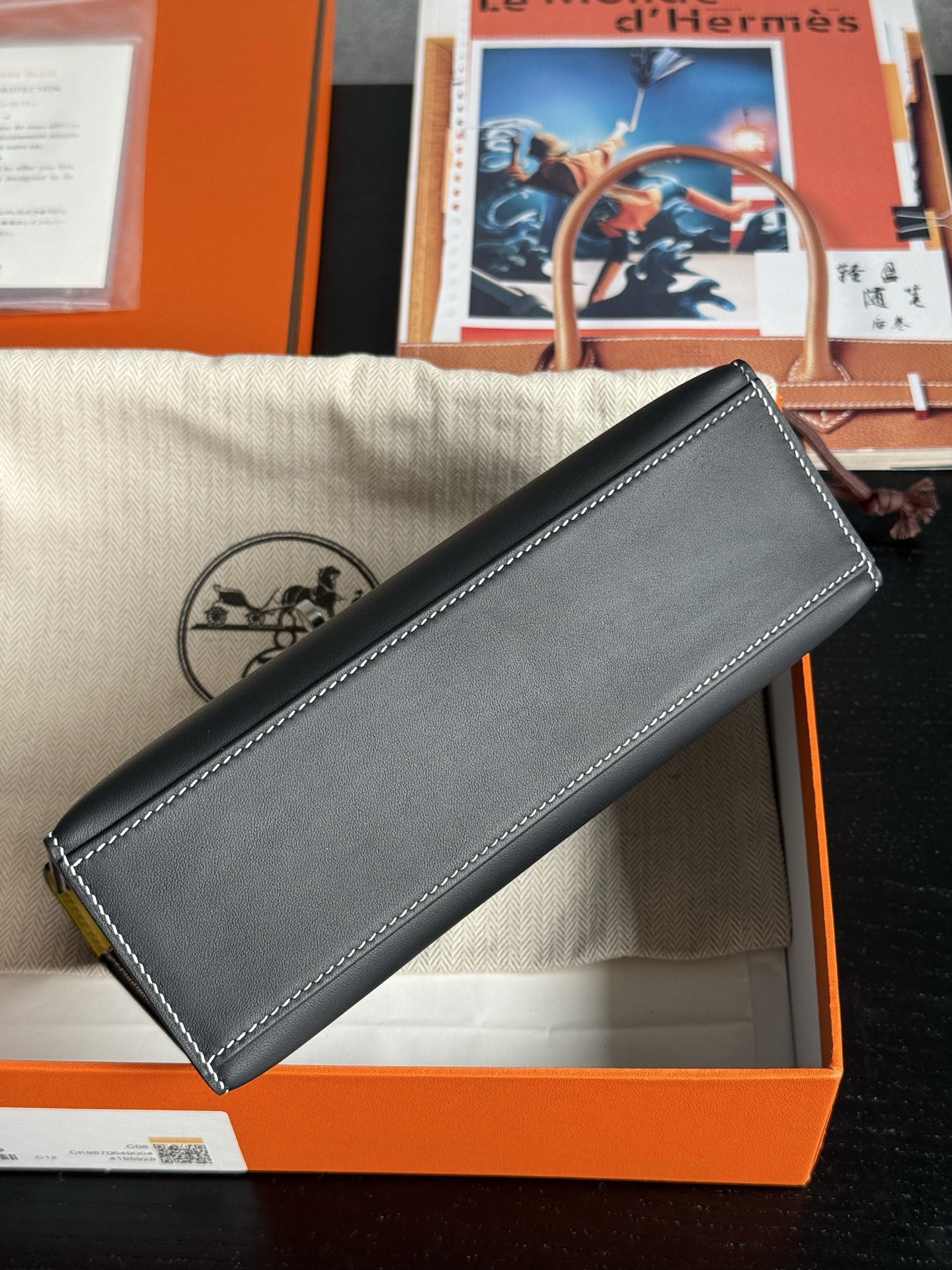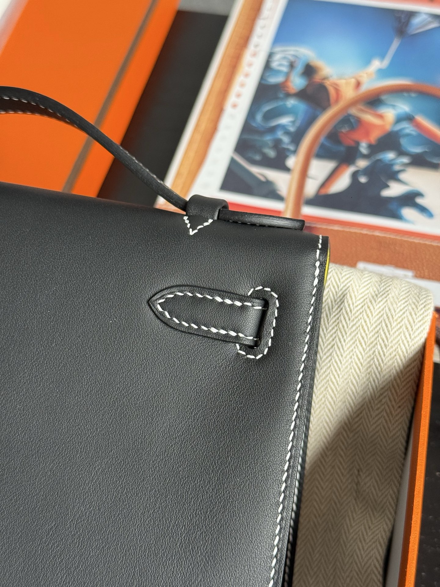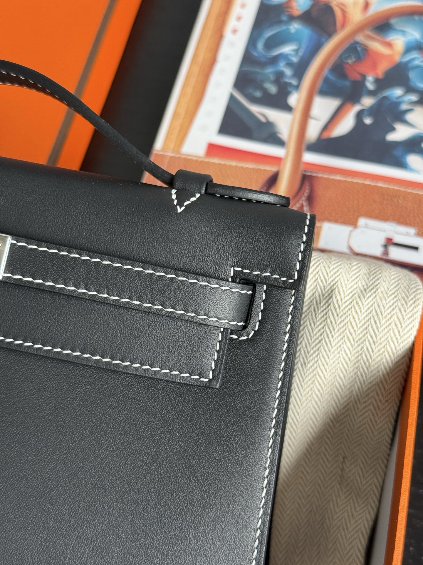 Kelly Pochette Swift Noir 9R Lime PHW Stamp K