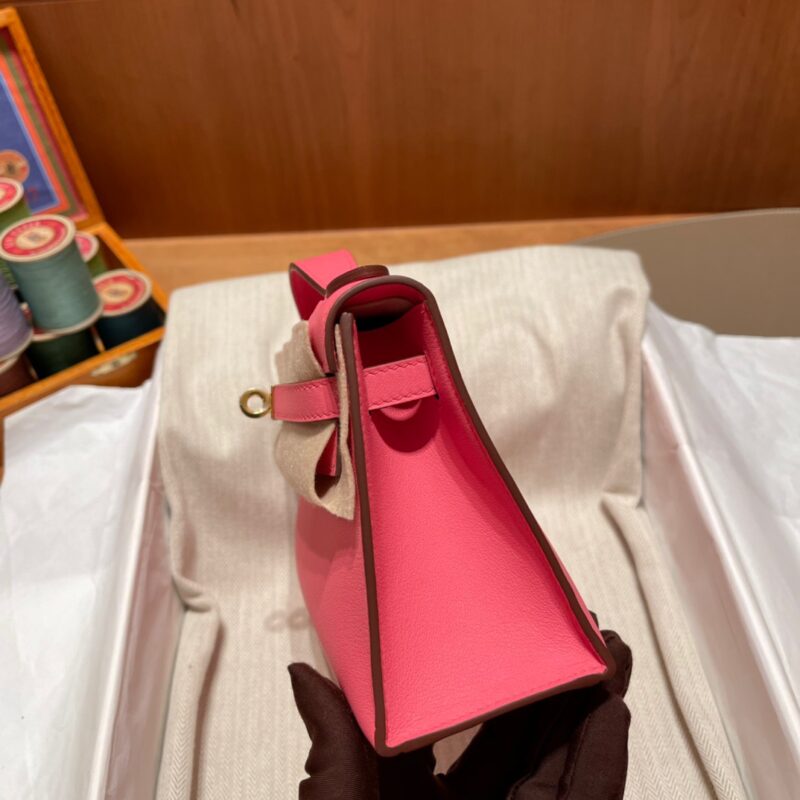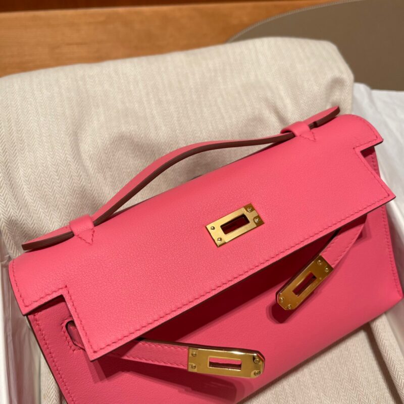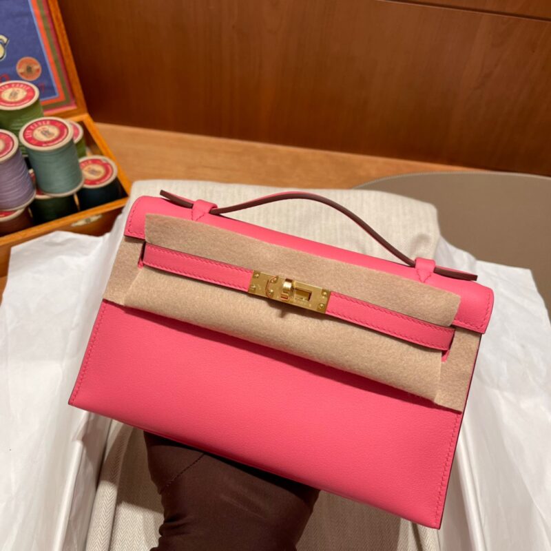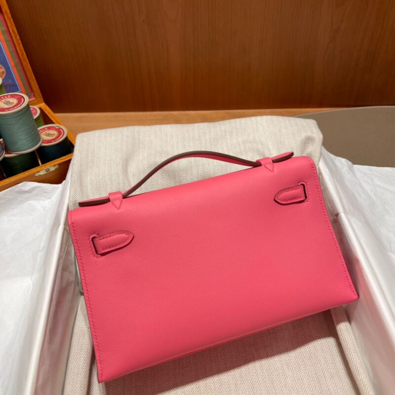 Kelly Pochette Generation Evening Bag Clutch It is a perfect partner with the pig nose chain. Gold Buckle. Swift leather. 8W Rose Azalee.