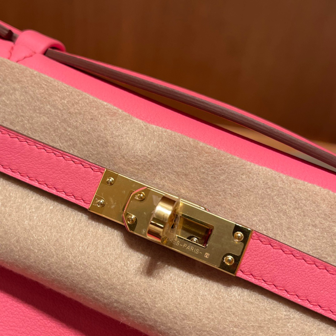 Kelly Pochette Generation Evening Bag Clutch It is a perfect partner with the pig nose chain. Gold Buckle. Swift leather. 8W Rose Azalee.