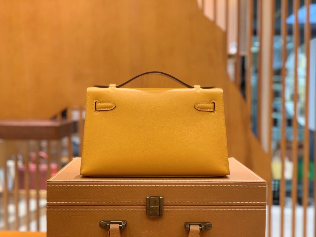 Mini Kelly Generation 22cm Sun Yellow Imported swift cowhide. Fully hand-sewn