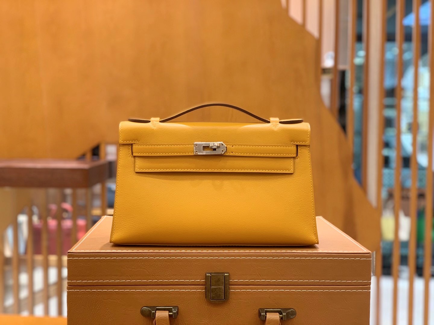 Mini Kelly Generation 22cm Sun Yellow Imported swift cowhide. Fully hand-sewn