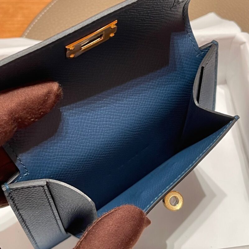 The design is great, it easily fits 6 cards and some cash without being bulky when full. The small body is just right in the bag, and the Kelly belt is the most popular pocket bag nowadays. Coupled with a universal pig nose chain, it is another mini messenger bag