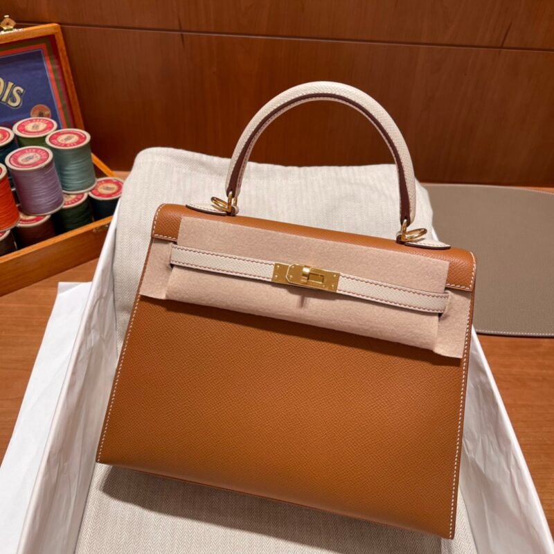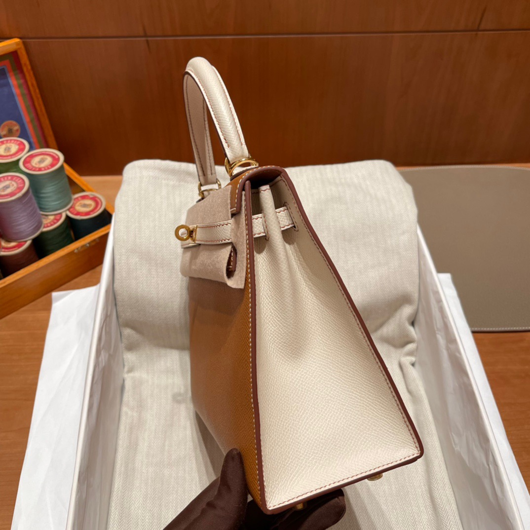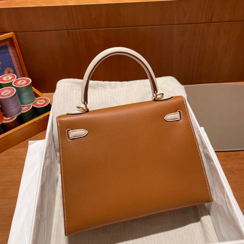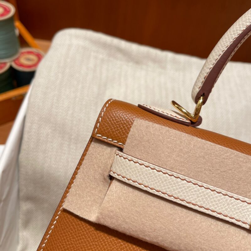 Special Order Kelly 25cm Palm Pattern Epsom leather 37 Gold Brown and 10 craie Platinum Buckle
