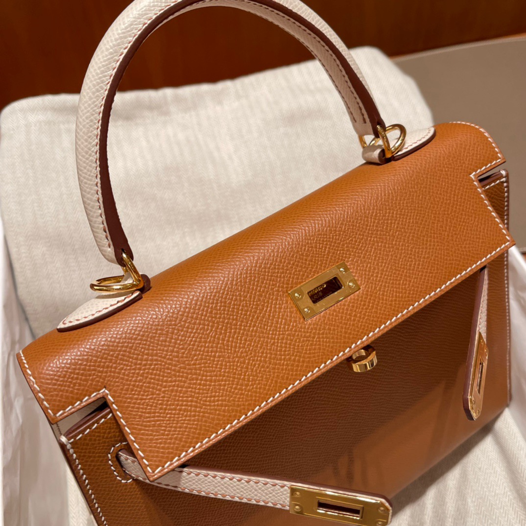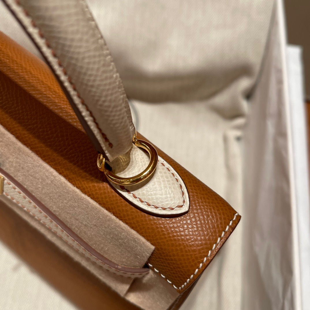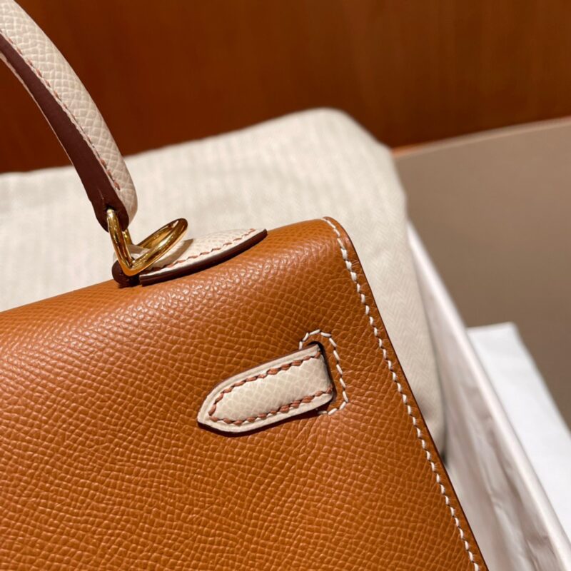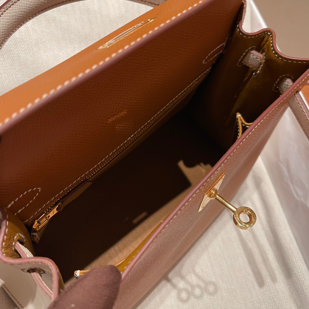 Special Order Kelly 25cm Palm Pattern Epsom leather 37 Gold Brown and 10 craie Platinum Buckle
