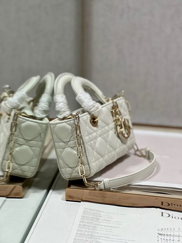 Lady D-joy White Mini Bag The new Lady D−Joy bag, many people should be attracted by this narrow Diana bag. The rhythm of the big hit, the bag comes with two shoulder straps, one long and one short, with a variety of carrying methods, can be worn cross-body or under the arm, the upper body is beautiful and rustic, the classic rhombus design, matching. Soft sheepskin is elegant and stylish Size: 16.5cm Model: 9031/0540
