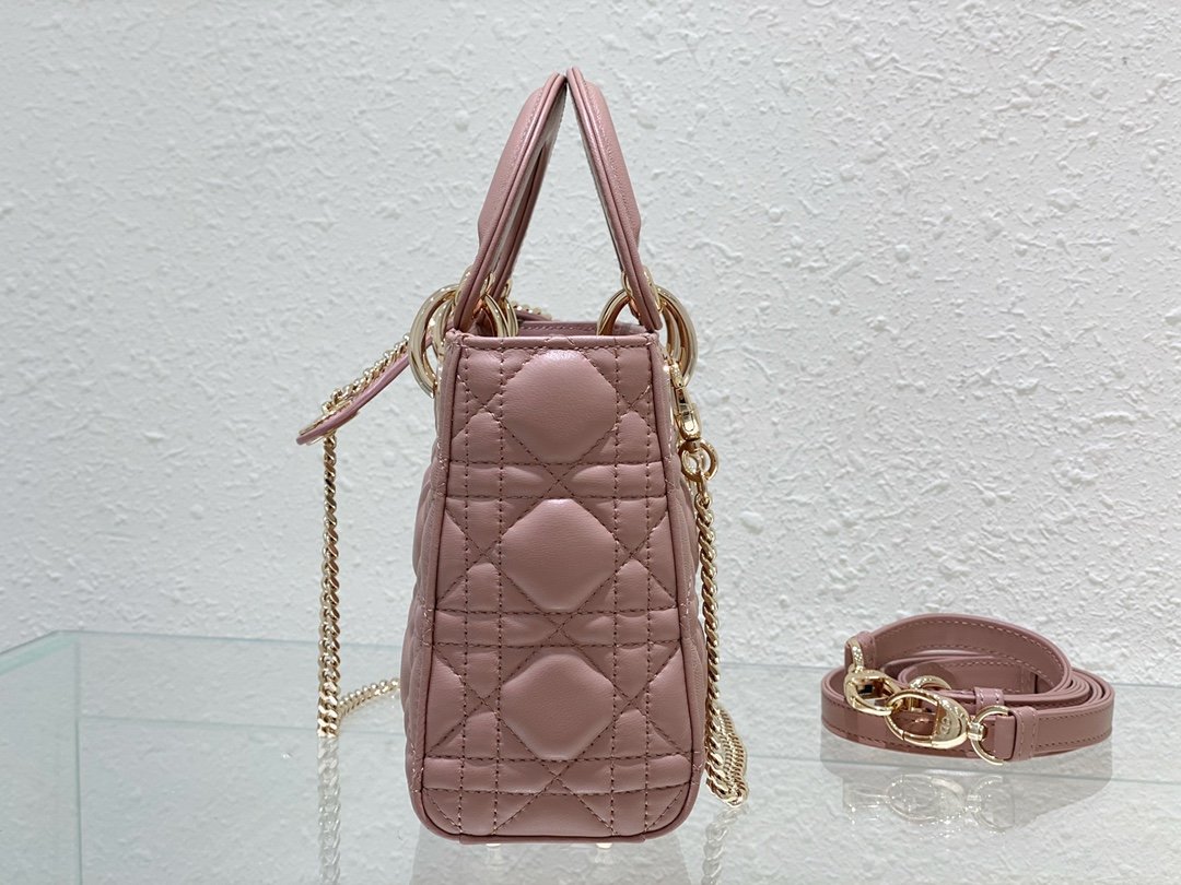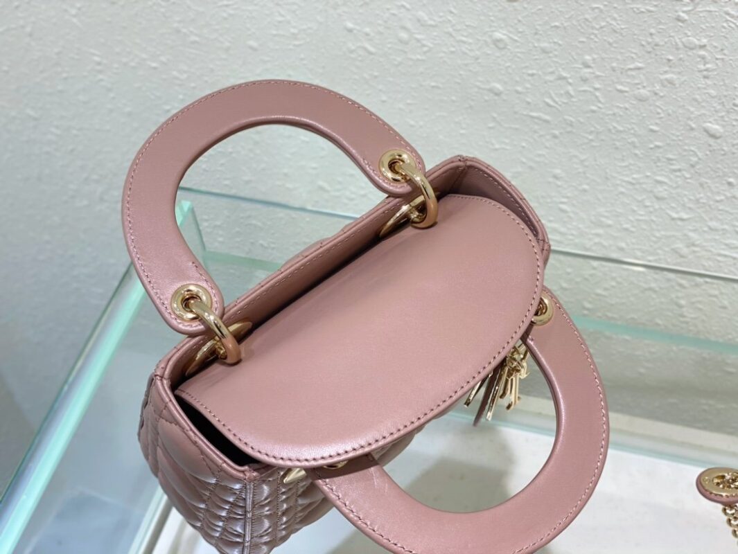 Lady Dior three-grid nude pink, the classic Diana handbag embodies Dior’s profound insight into elegance and beauty. Meticulously crafted with bold quilted detailing with cannage topstitching, this elegant, timeless design is timeless. Finished metal “D.I.O.R.” charm adds a touch of movement to the delicate silhouette. Mini style with a detachable chain shoulder strap, it can be carried by hand, on the shoulder or cross-body, making it an ideal companion for evening wear. Detachable chain shoulder strap, which can be matched with other embroidered shoulder straps at will, size: 17×15×7cm