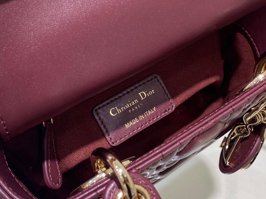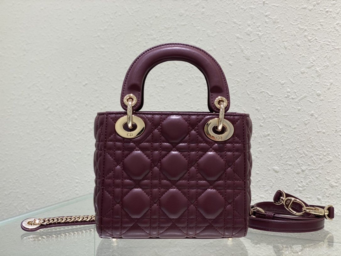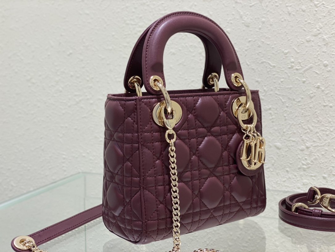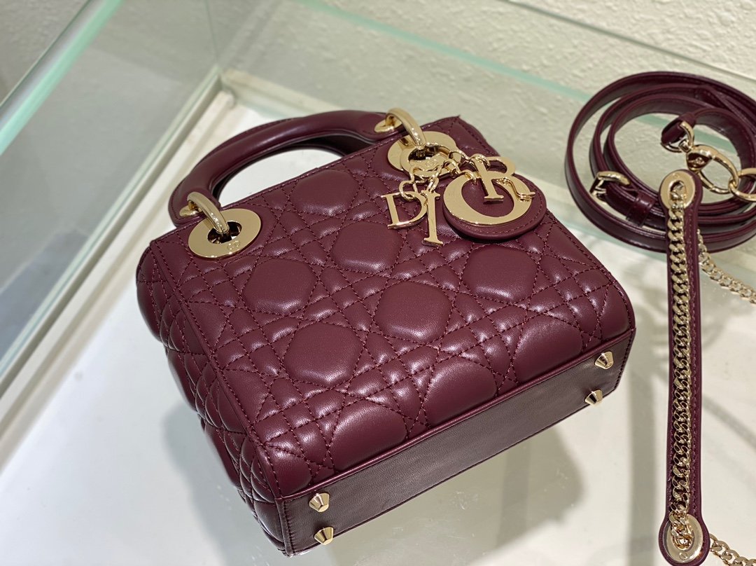 Lady Dior three-grid wine red, the classic Diana handbag embodies Dior’s profound insight into elegance and beauty. Meticulously crafted with bold quilted detailing with cannage topstitching, this elegant, timeless design is timeless. Finished metal “D.I.O.R.” charm adds a touch of movement to the delicate silhouette. Mini style with a detachable chain shoulder strap, it can be carried by hand, on the shoulder or cross-body, making it an ideal companion for evening wear. Detachable chain shoulder strap, which can be matched with other embroidered shoulder straps at will, size: 17×15×7cm