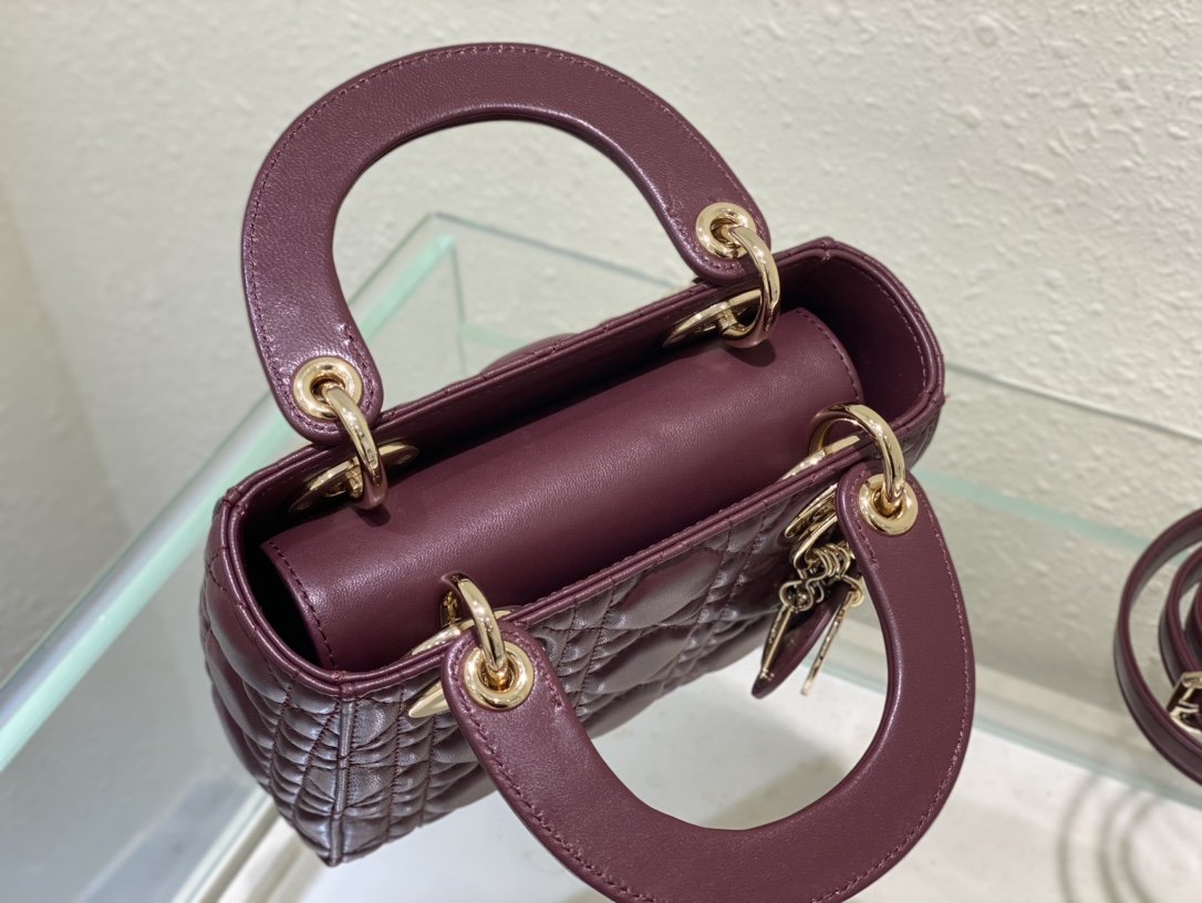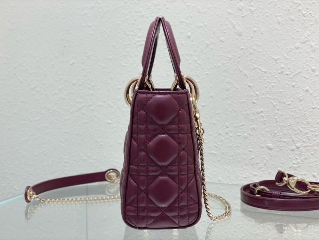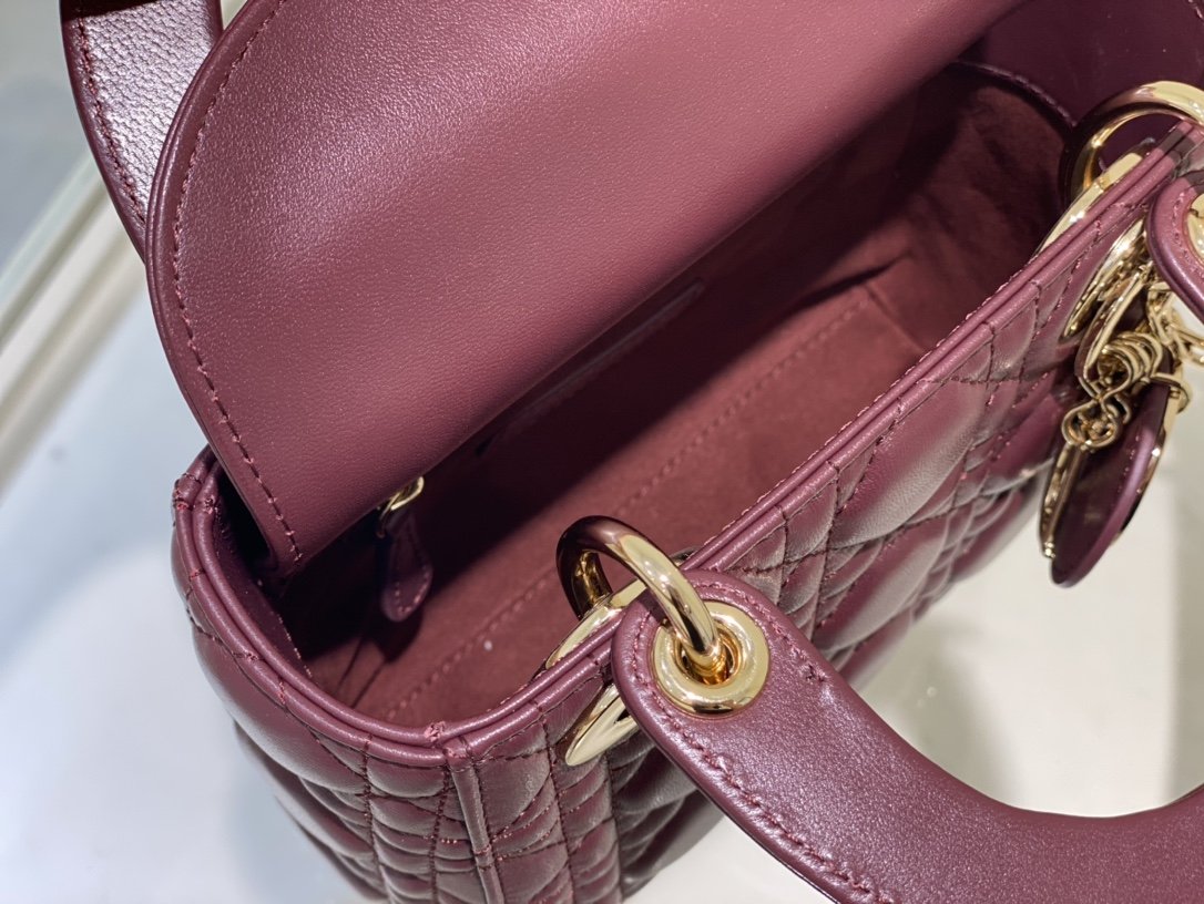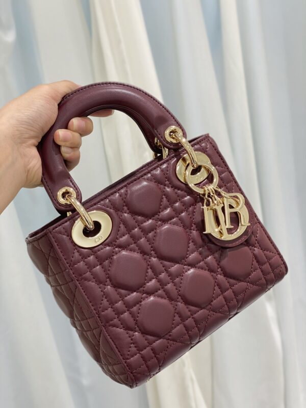 Lady Dior three-grid wine red, the classic Diana handbag embodies Dior’s profound insight into elegance and beauty. Meticulously crafted with bold quilted detailing with cannage topstitching, this elegant, timeless design is timeless. Finished metal “D.I.O.R.” charm adds a touch of movement to the delicate silhouette. Mini style with a detachable chain shoulder strap, it can be carried by hand, on the shoulder or cross-body, making it an ideal companion for evening wear. Detachable chain shoulder strap, which can be matched with other embroidered shoulder straps at will, size: 17×15×7cm