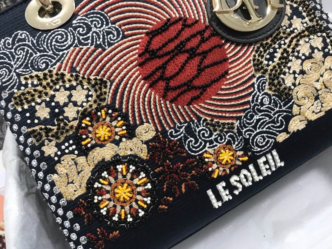 Lady Dior five grid embroidery sun beads, an insight into elegance and beauty. Chic and feminine, timeless yet modern. Crafted from delicate beaded calfskin with seasonal motifs, it exudes Maria Grazia Chiuri’s fascination with mystery. Heralds good luck and joy. A signature ‘D.I.O.R.’ charm in pale gold adorns its A-line silhouette. This medium bag features a detachable shoulder strap. Adjustable leather shoulder strap, internal zipped pocket, can be carried by hand, on the shoulder or crossbody, dimensions: 24 x 20 x 11 cm