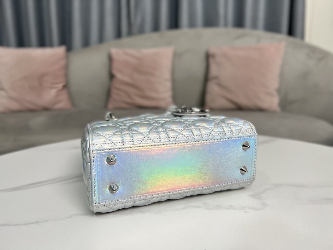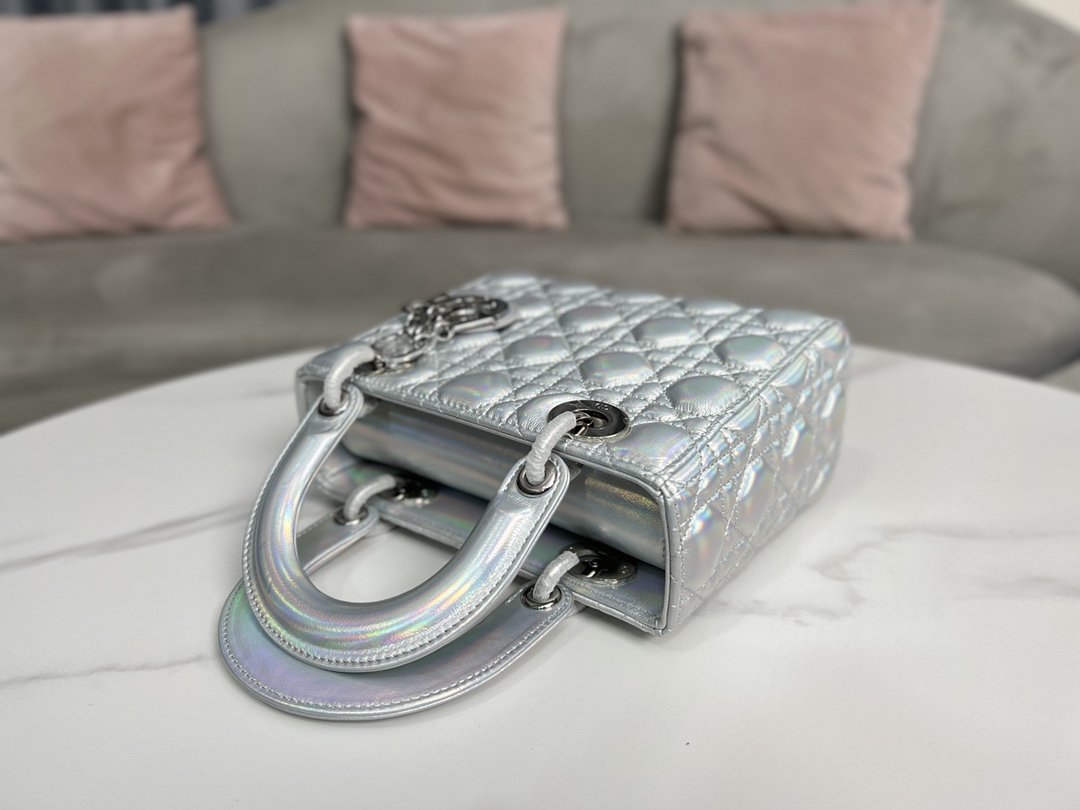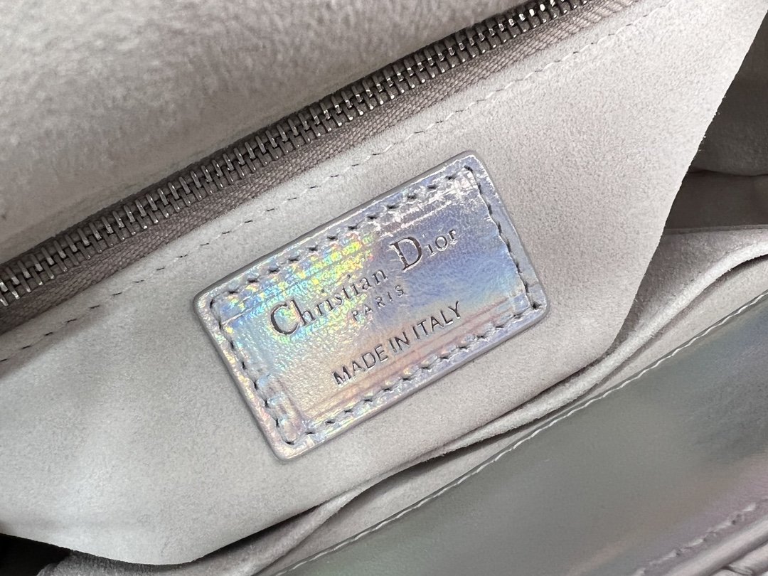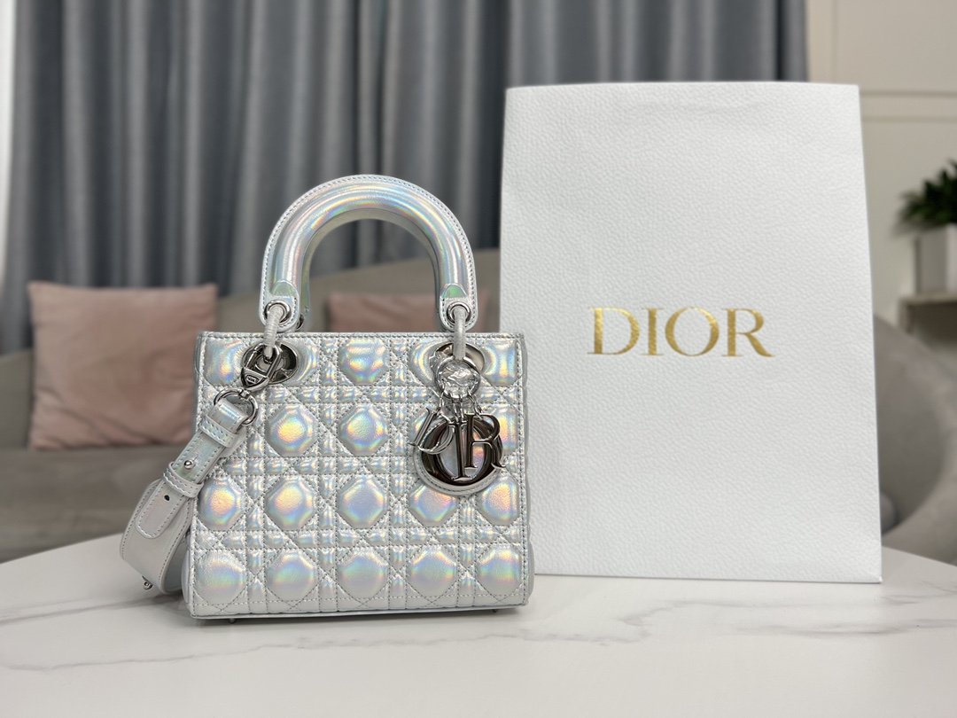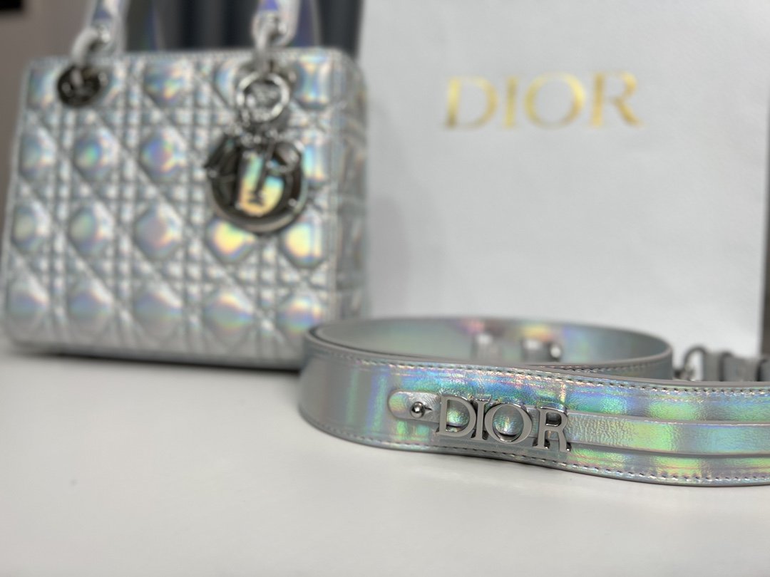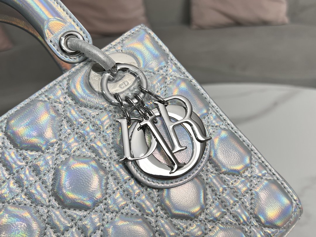 The Lady Dior My ABCDior bag from the Dior Or collection epitomizes Dior’s vision of elegance and beauty. Crafted in neon silver-tone metallic lambskin with bold quilted detailing with cannage topstitching, this timeless design is timeless. Embellished with a metal-clad metal D.I.O.R. charm, adding a touch of movement to the delicate silhouette. Small size with chic design, shoulder strap can be embellished with a badge for personalization, can be carried by hand or cross-body.