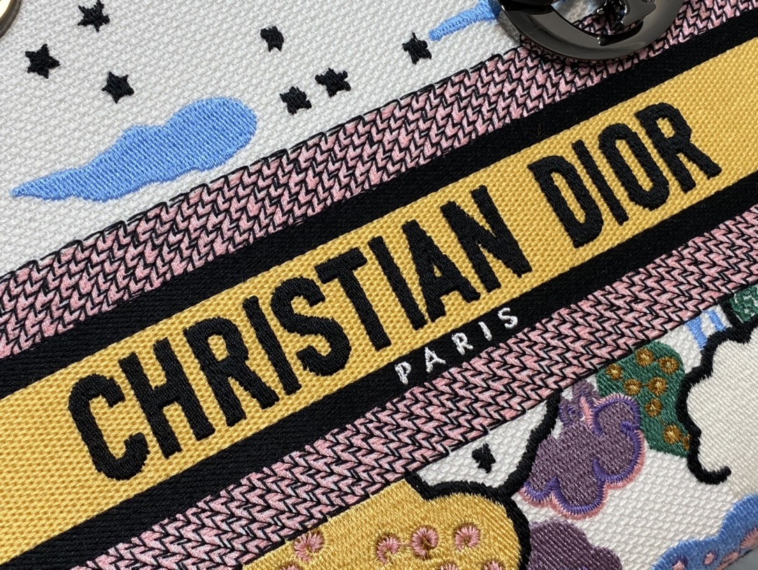 Lady Dior Dream Sky Lady Dior’s latest dreamy sky series, full of summer vacation atmosphere, very sculptural cloud embroidery, exquisite craftsmanship, perfect color matching, overall stylish and retro, advanced and romantic. Size: 24cm