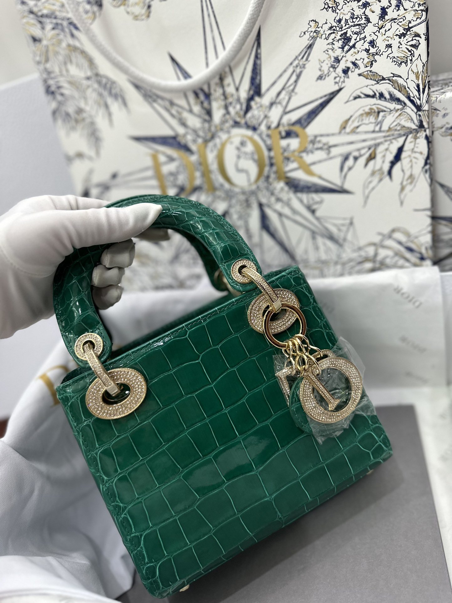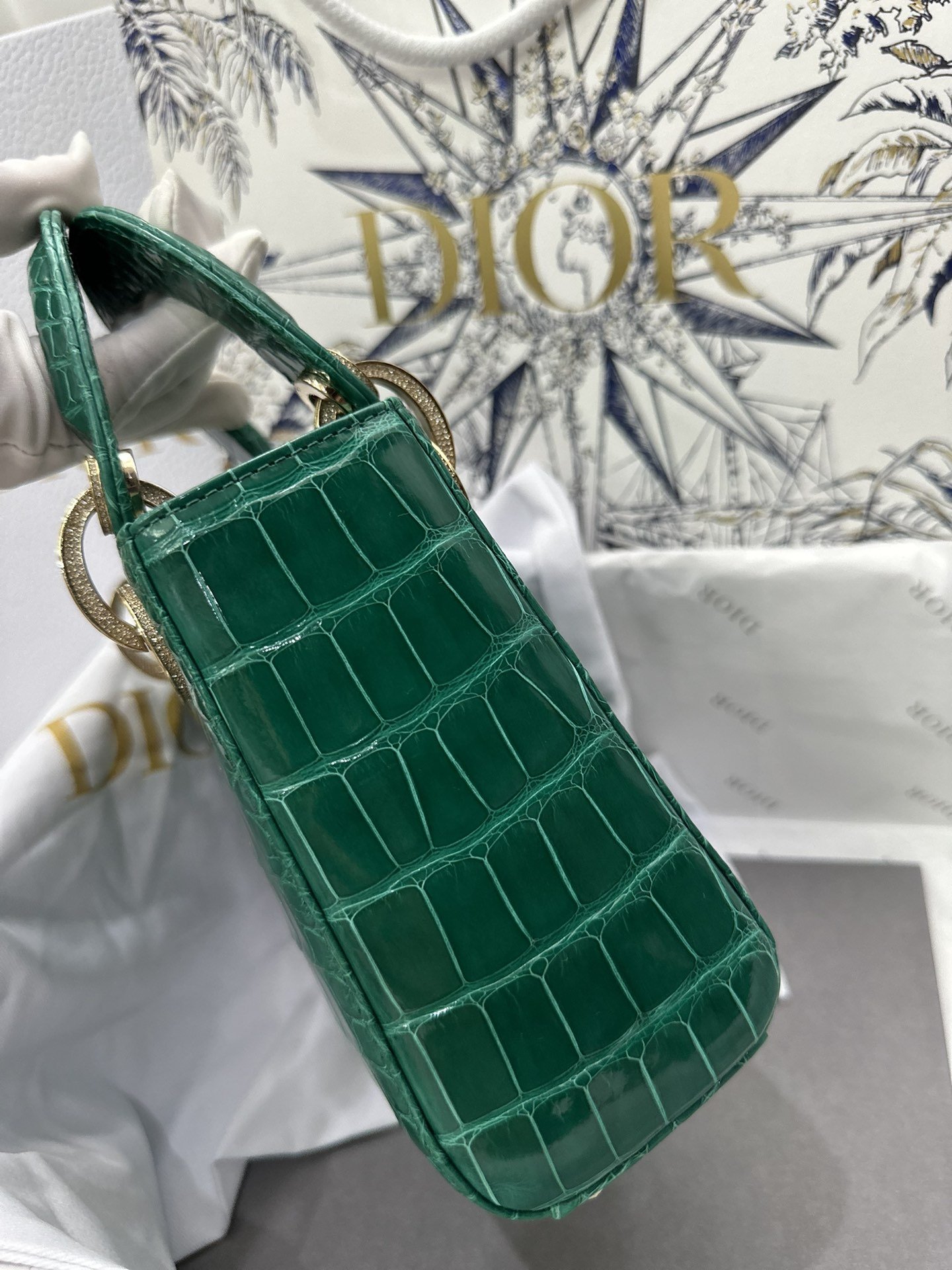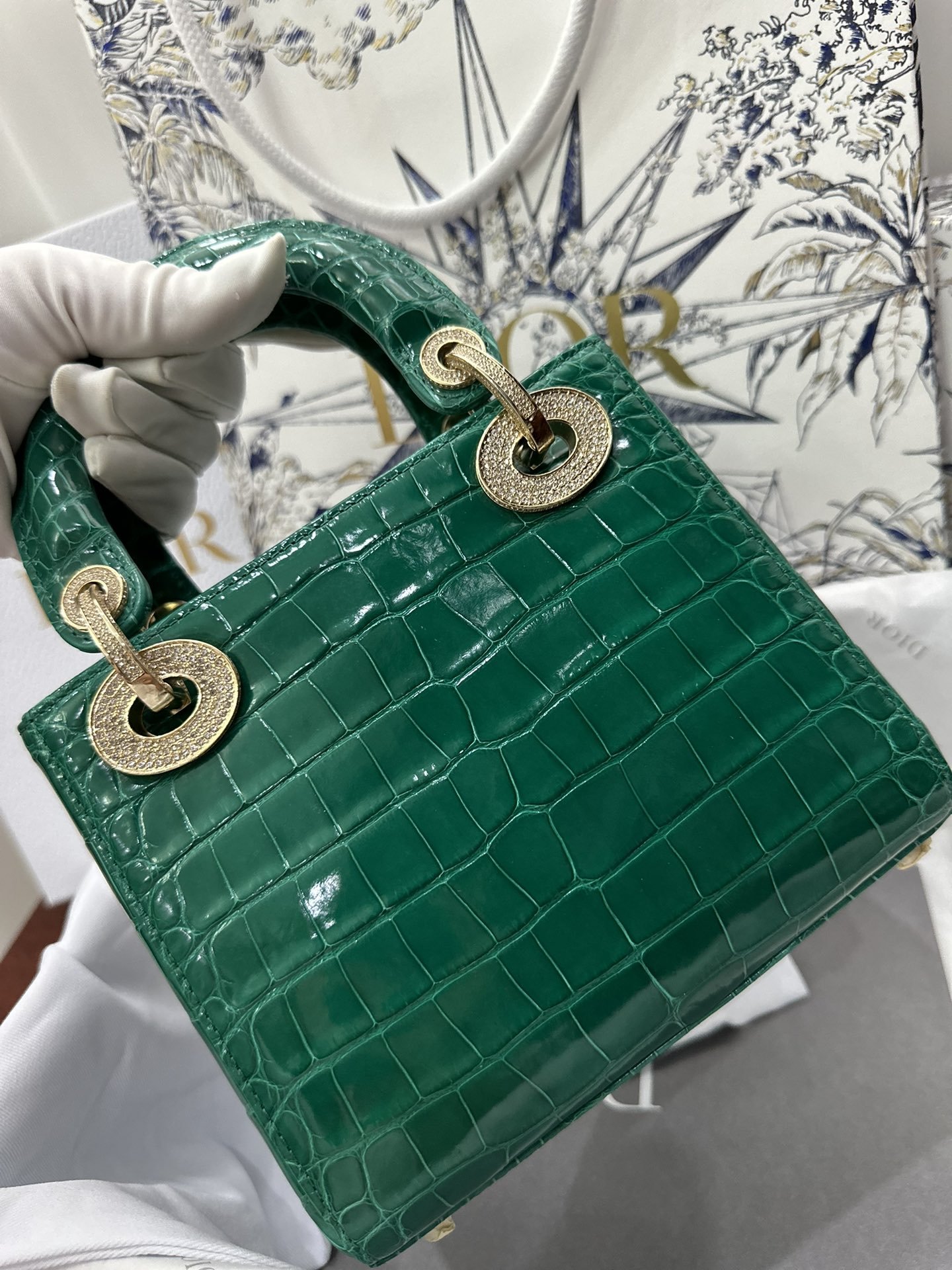 Lady Dior Mini Bag in Emerald Green Crocodile