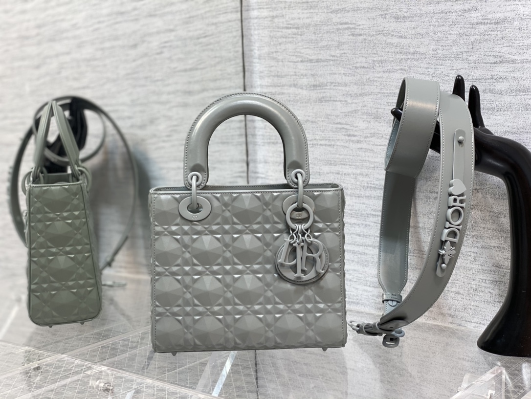 Lady Dior Small BagFour grid matte series matte grey. Brand new diamond rhombus. High-quality leather embossed, with matte hardware. Casual and elegant. The most unique three grid lady this season. Size: 20cm