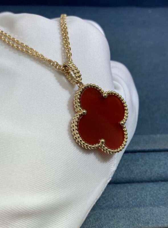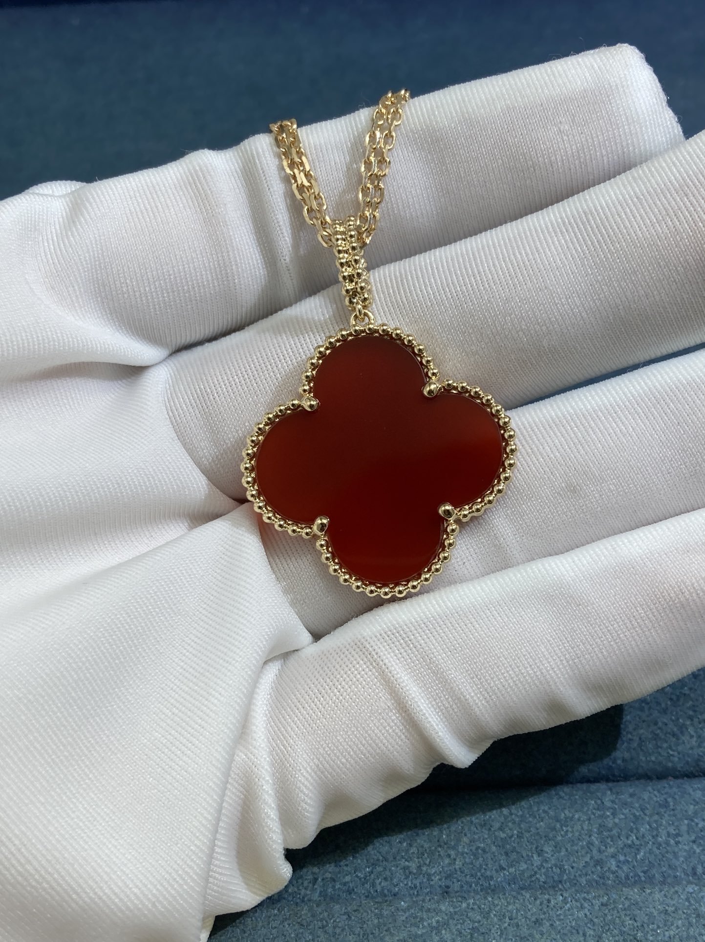 VCA Large Carnelian Clover Necklace, Yellow Gold