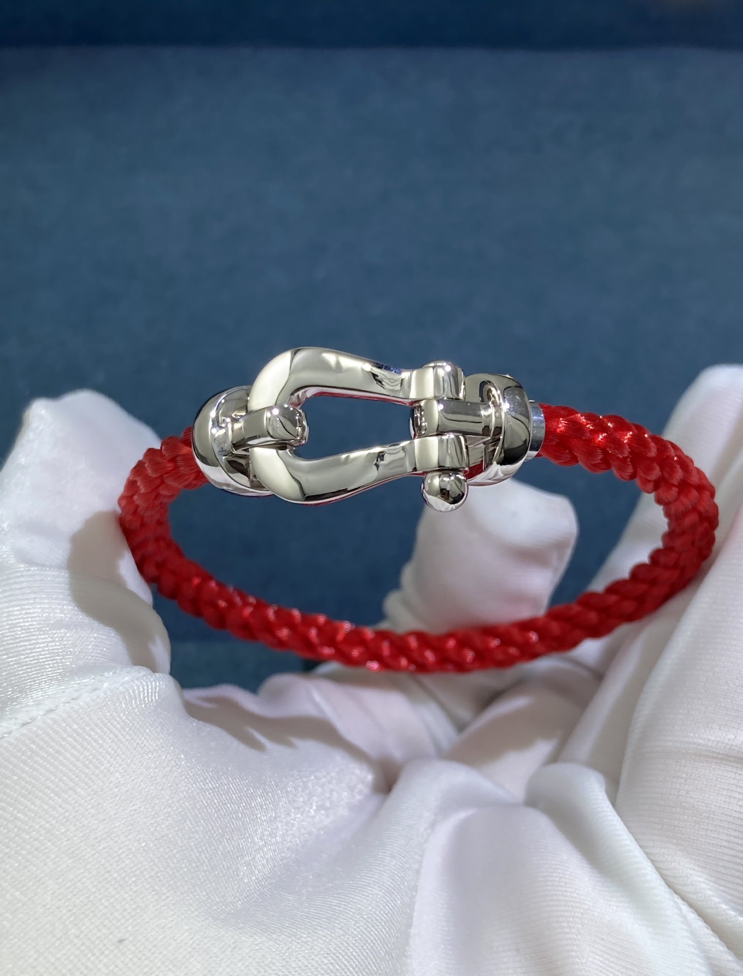 Fred Large Horseshoe Buckle Red String, Platinum