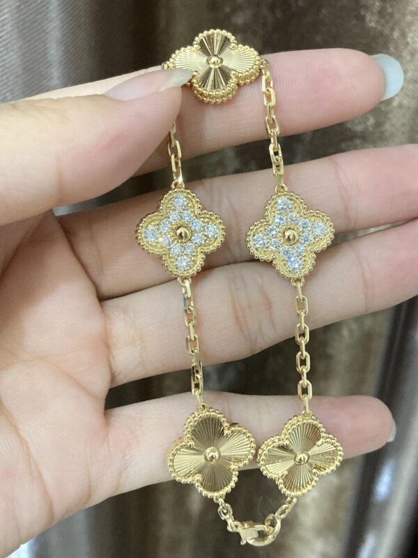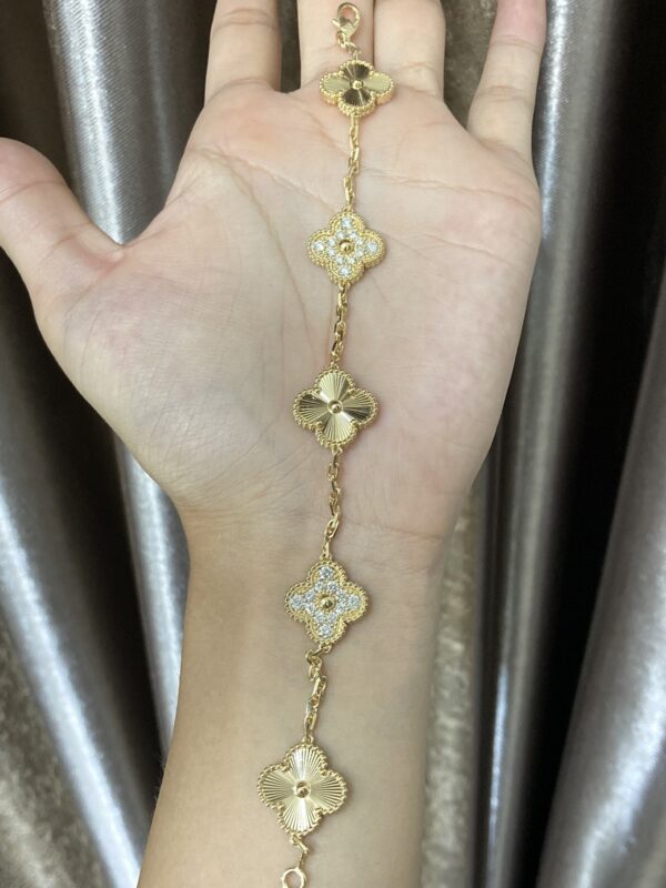 The metal used in pieces of jewelry are often a lustrous yellow or white gold, which is expertly polished to a mirror-like finish. The precious stones are carefully selected by our masters and set in a precise manner, showing off their color, clarity, and brilliance to their full potential.