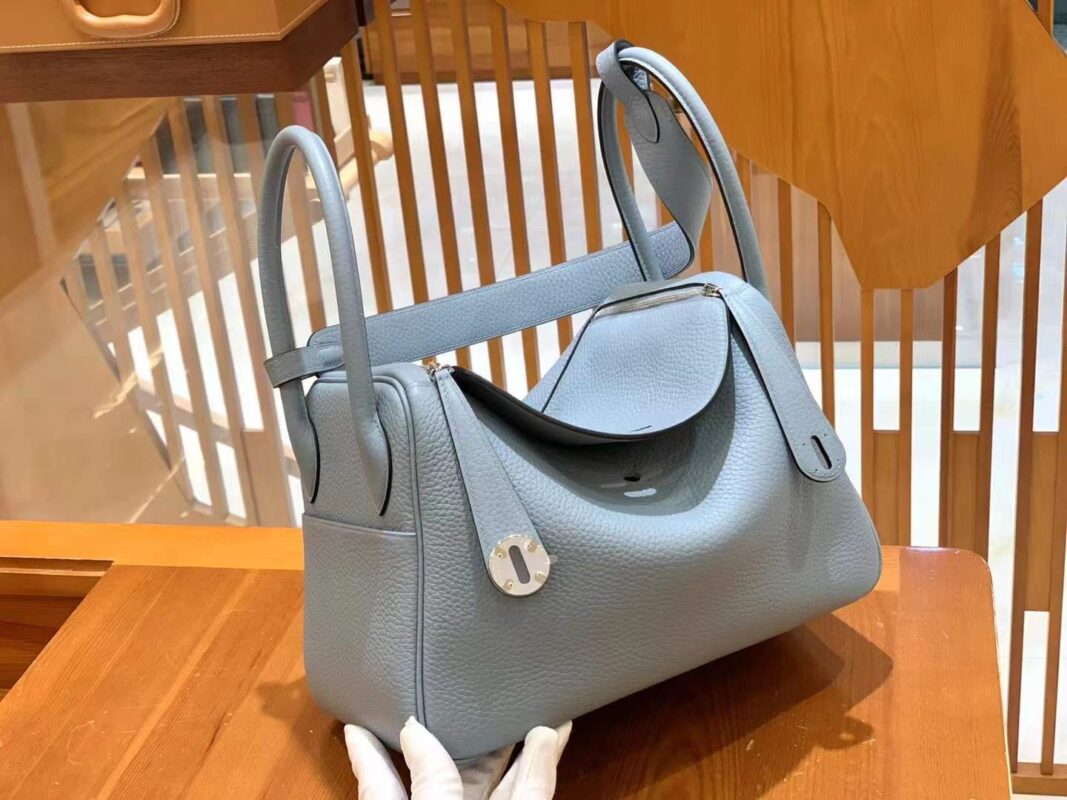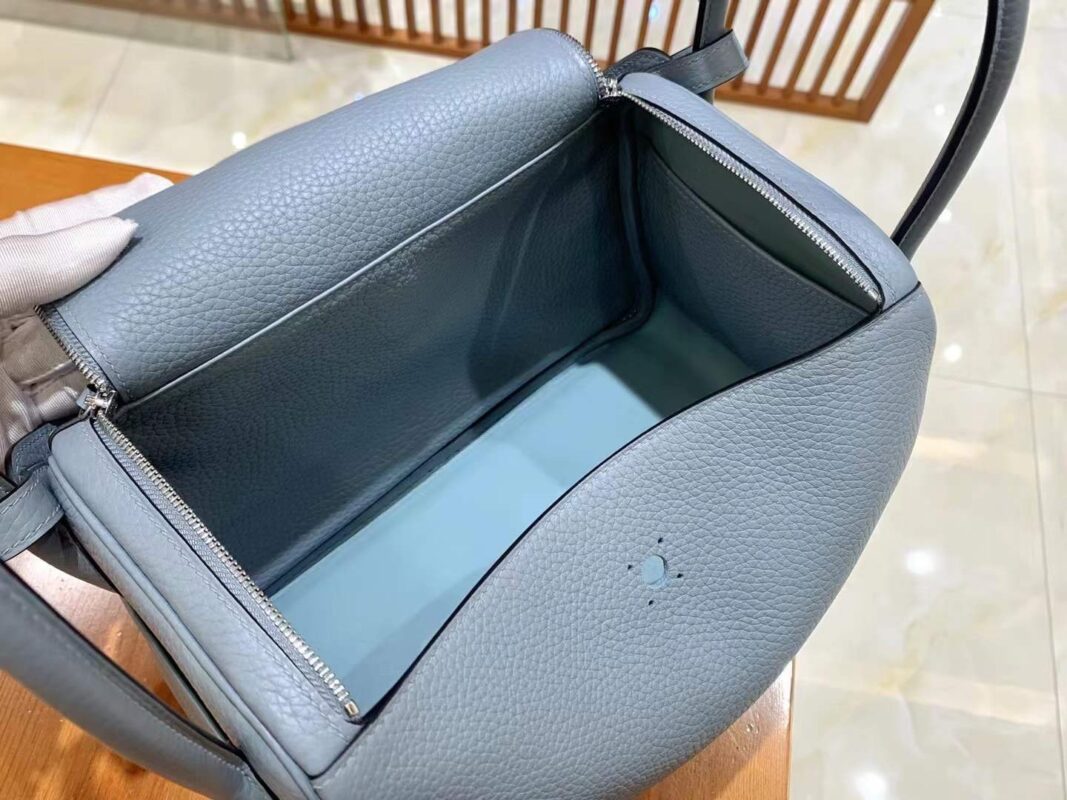 Lindy 26cm Linen Blue Imported TC cowhide. Fully hand-sewn