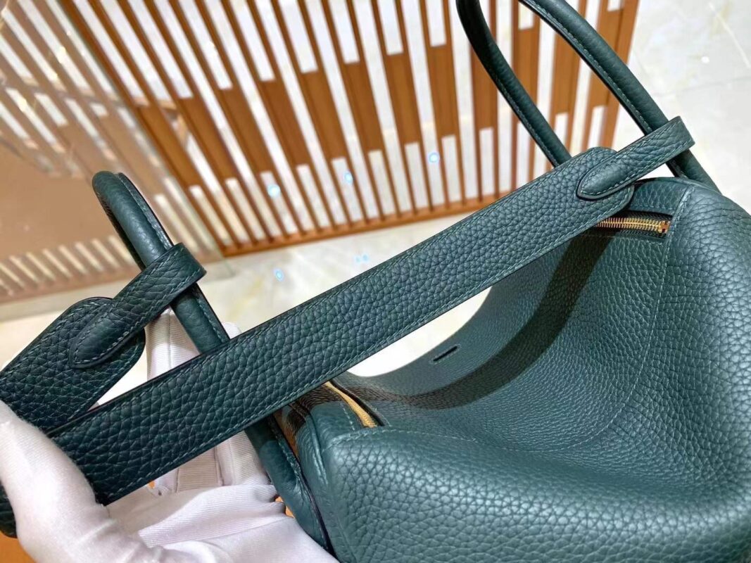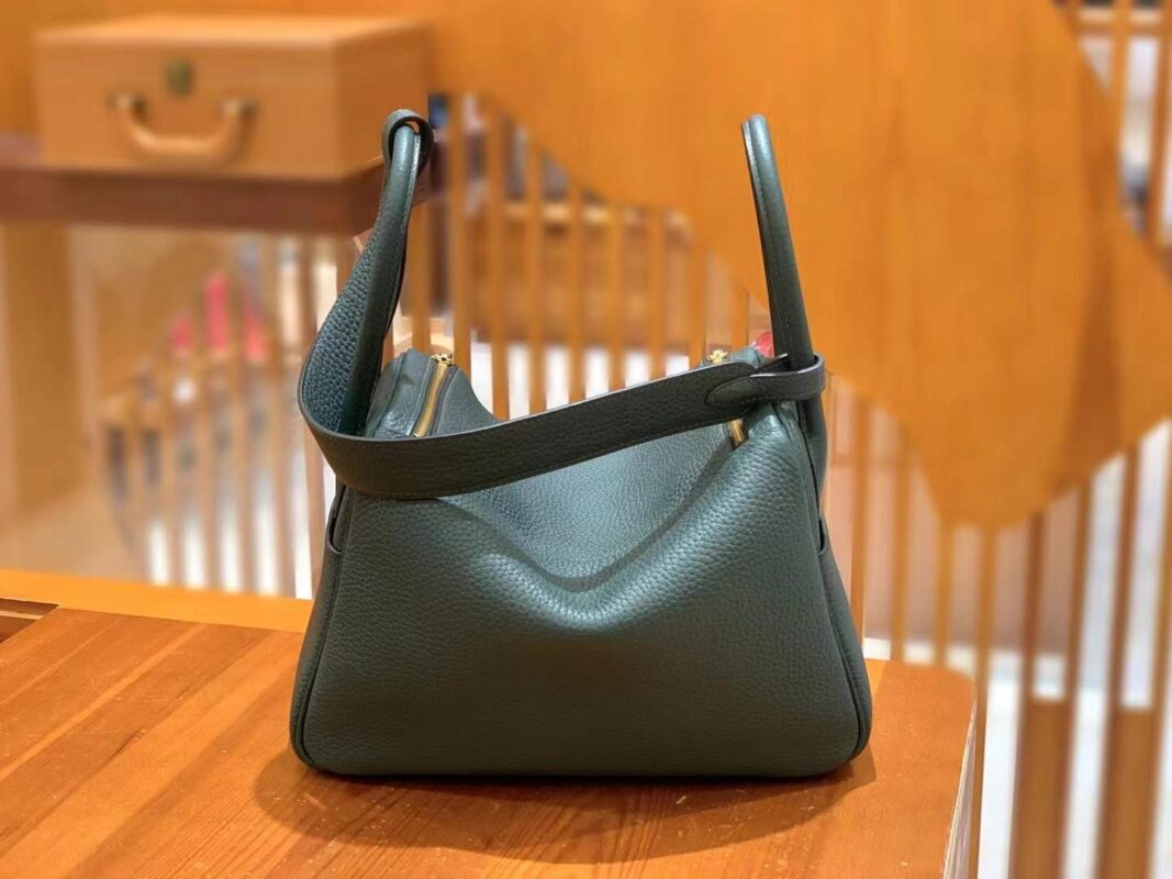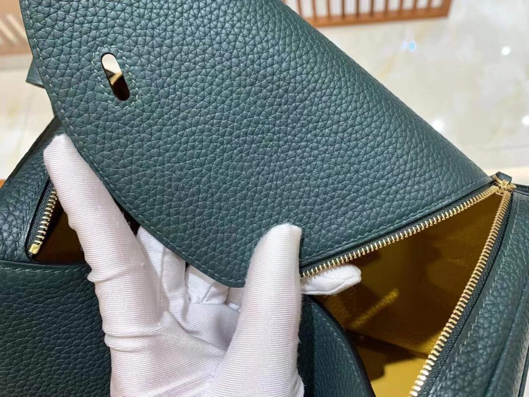 Lindy 26cm Pine and Cypress Green with Amber Yellow inside Imported TC cowhide. Fully hand-sewn