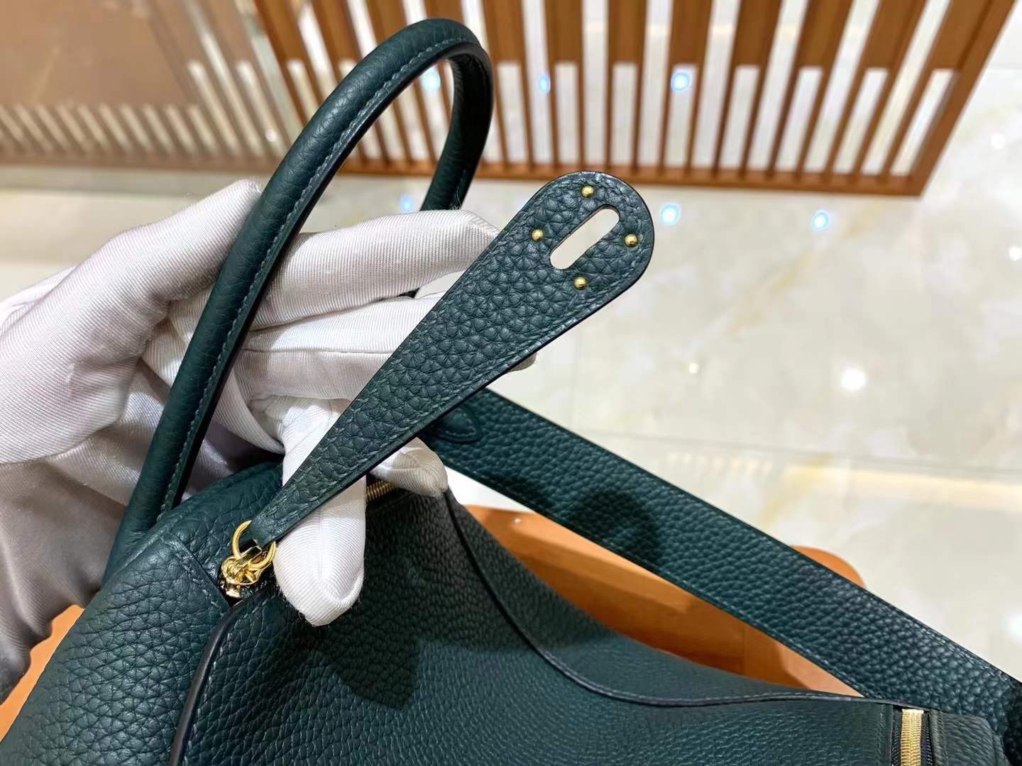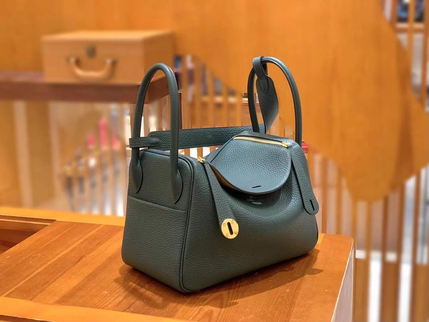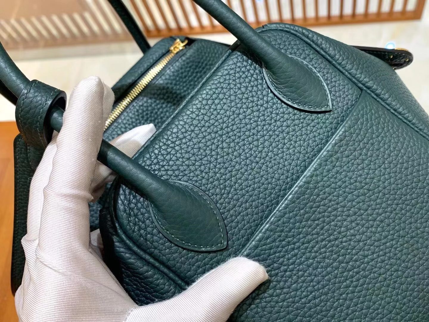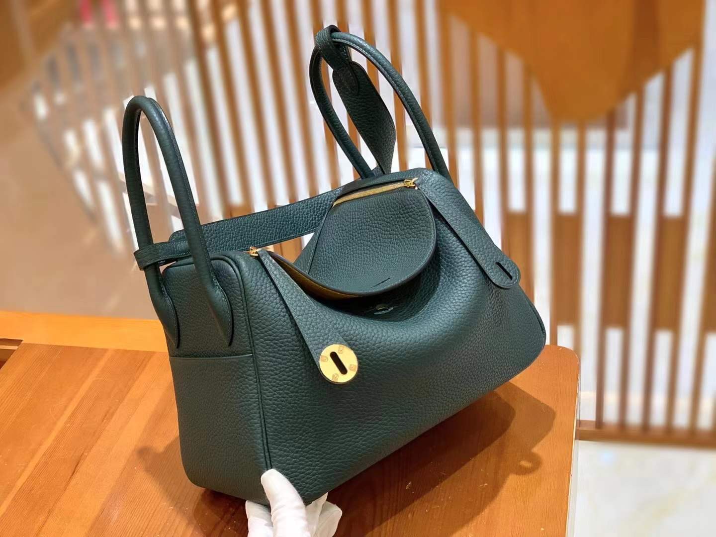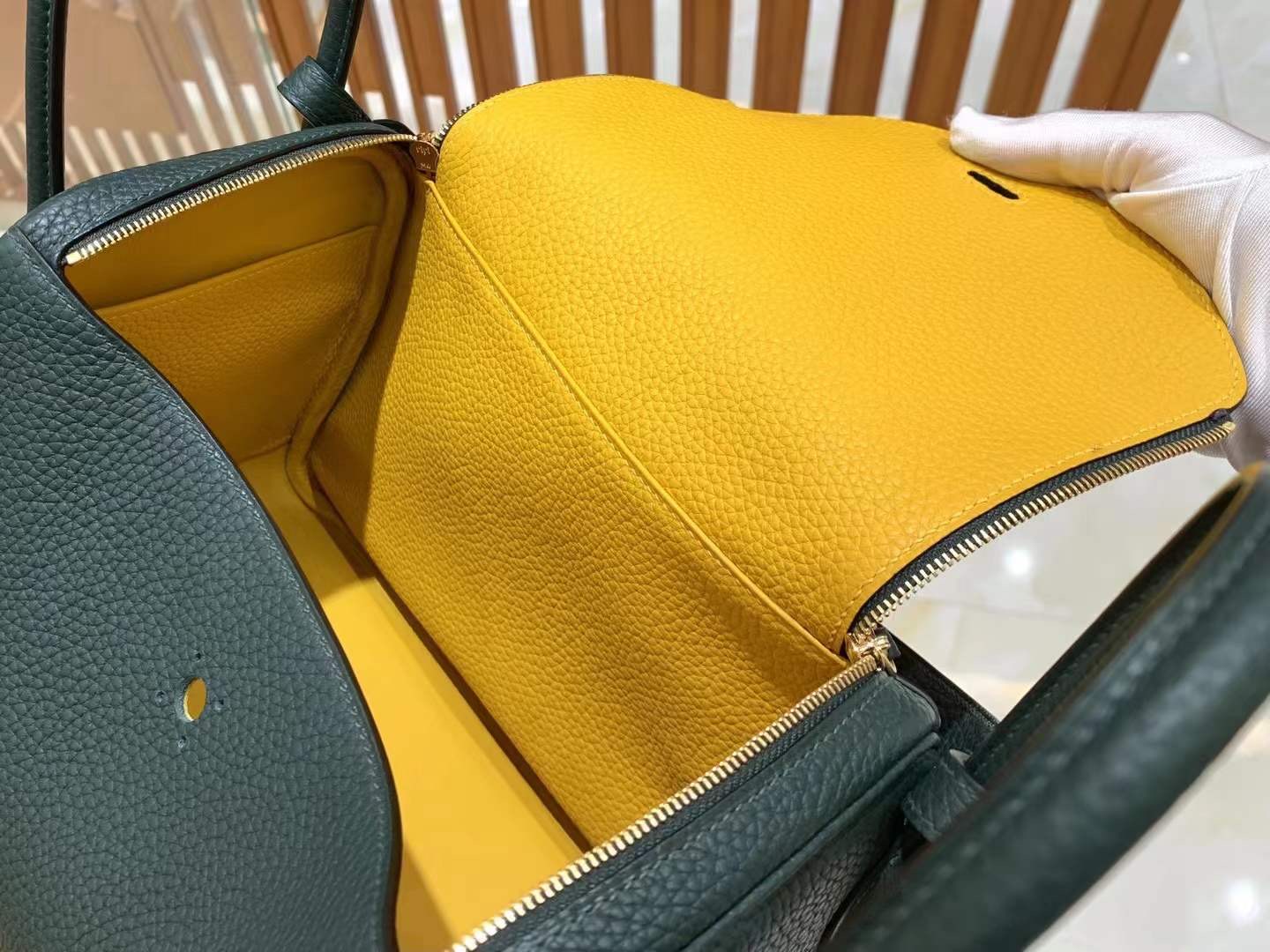 Lindy 26cm Pine and Cypress Green with Amber Yellow inside Imported TC cowhide. Fully hand-sewn