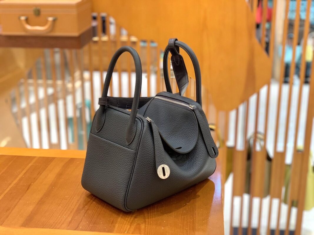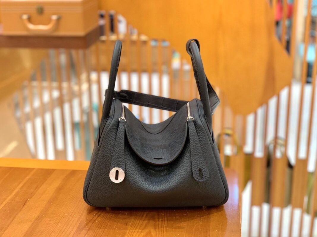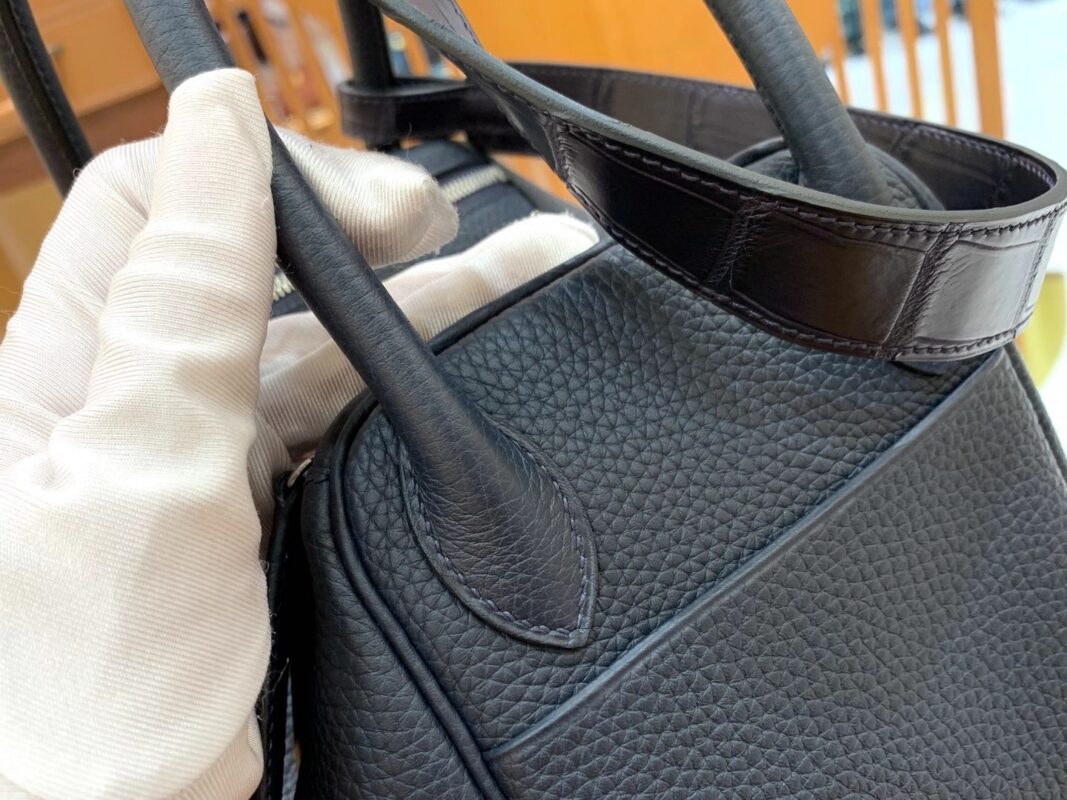 Lindy 26cm Midnight Blue Imported TC and crocodile leather. Hand-stitched