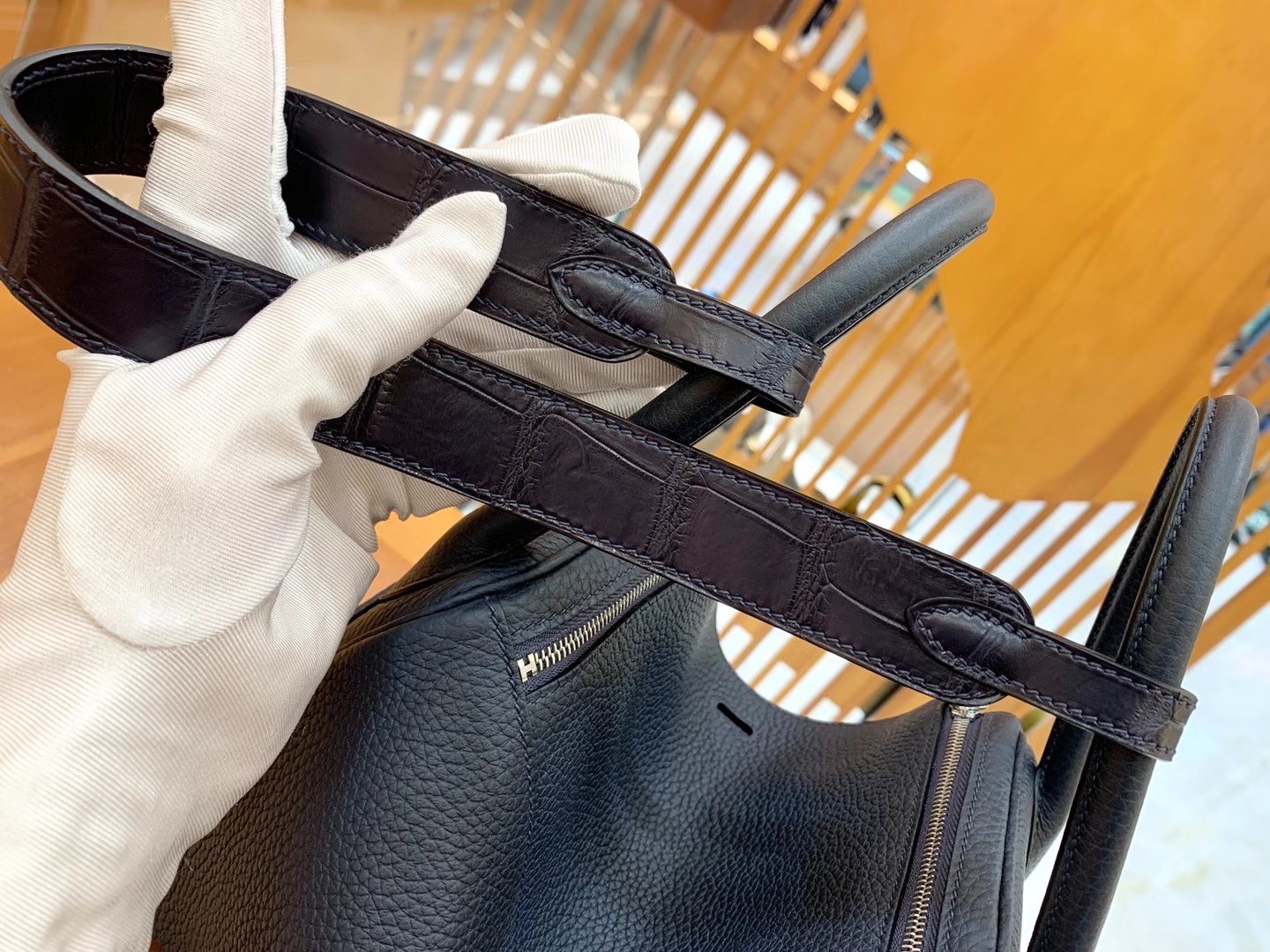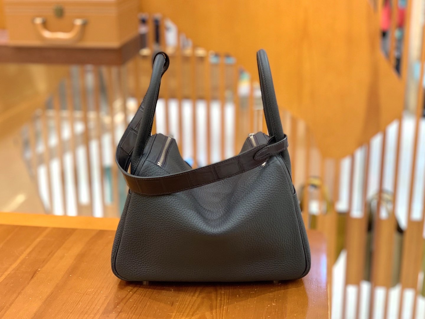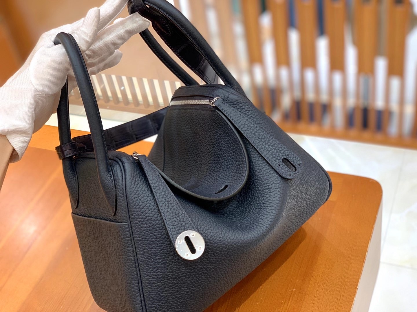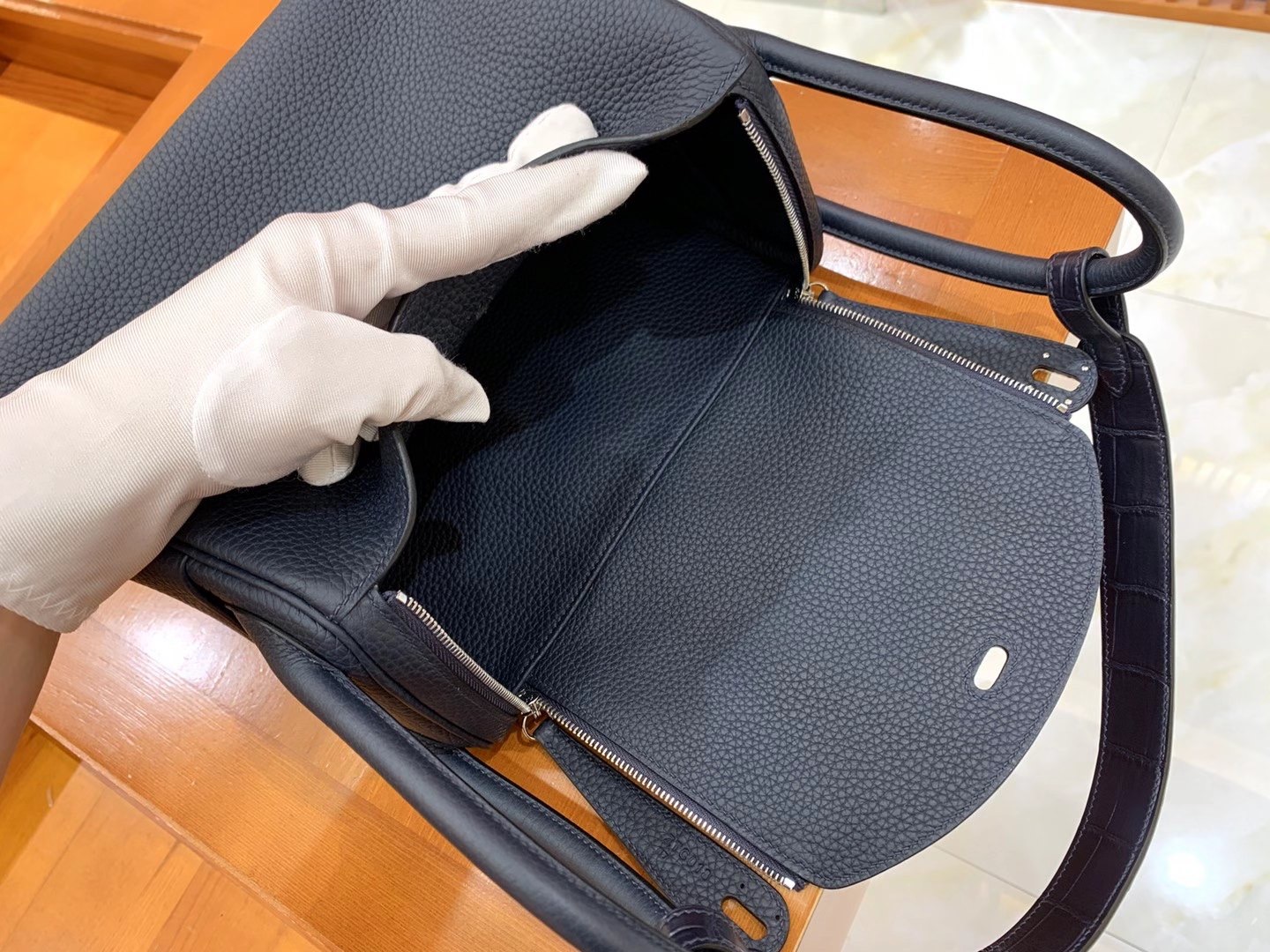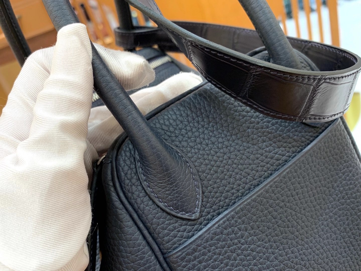 Lindy 26cm Midnight Blue Imported TC and crocodile leather. Hand-stitched