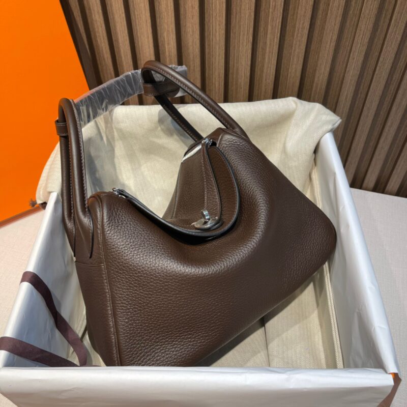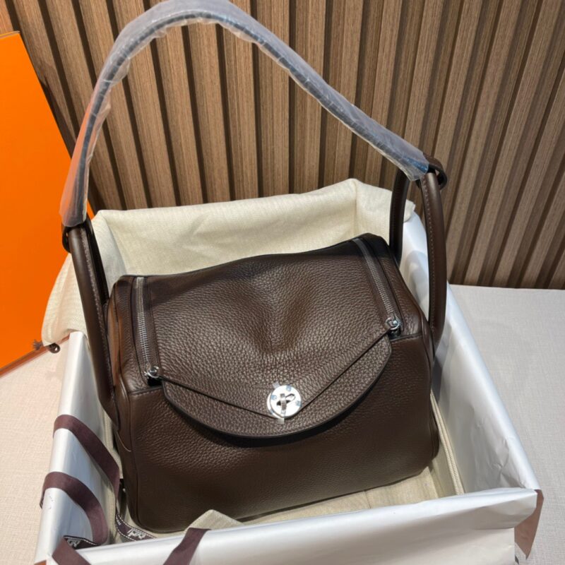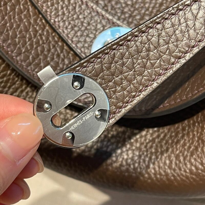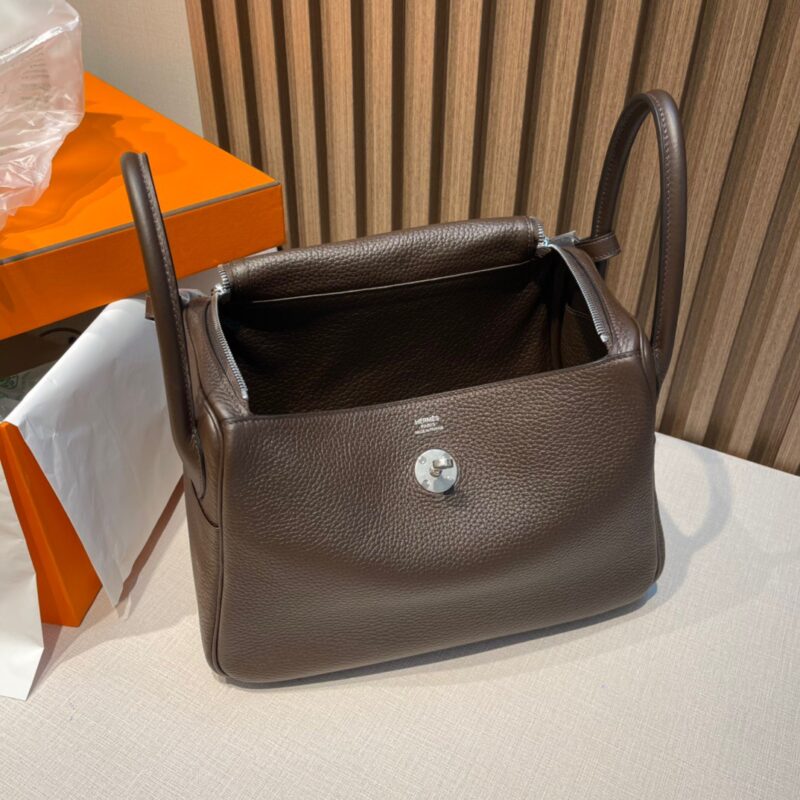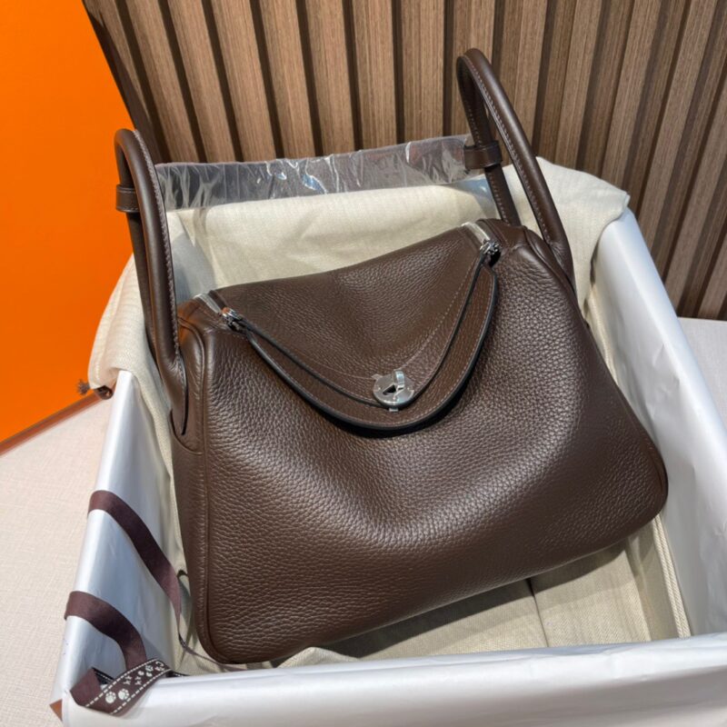 Lindy 30cm Clemence Leather 46 Ebony (Ebene) Color varies in different light, similar to chocolate, sometimes looks like dark brown, sometimes close to black.